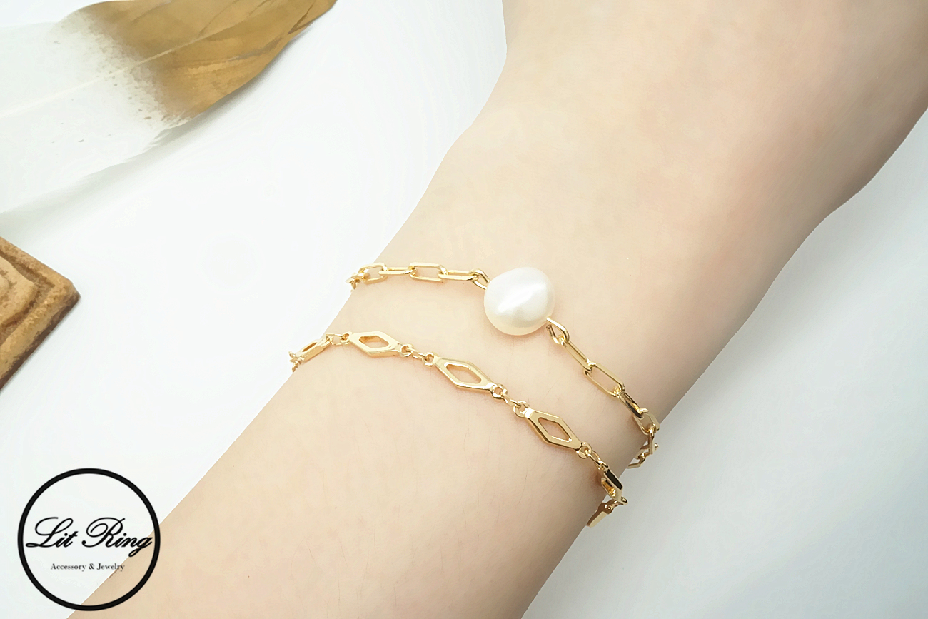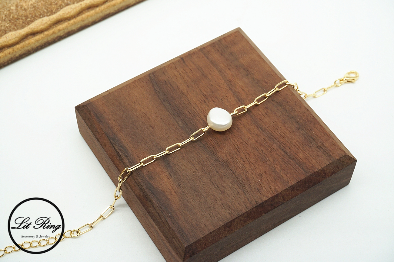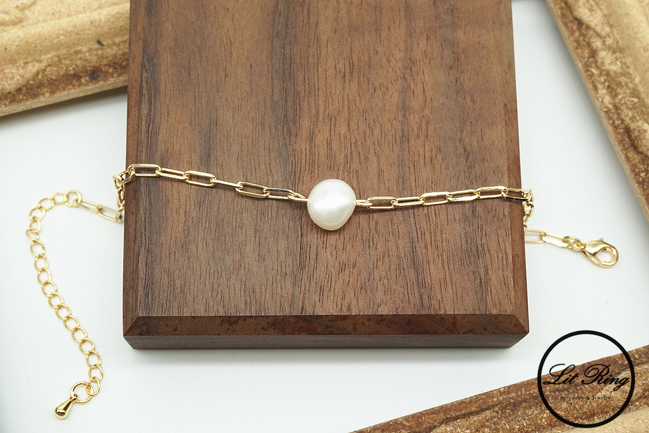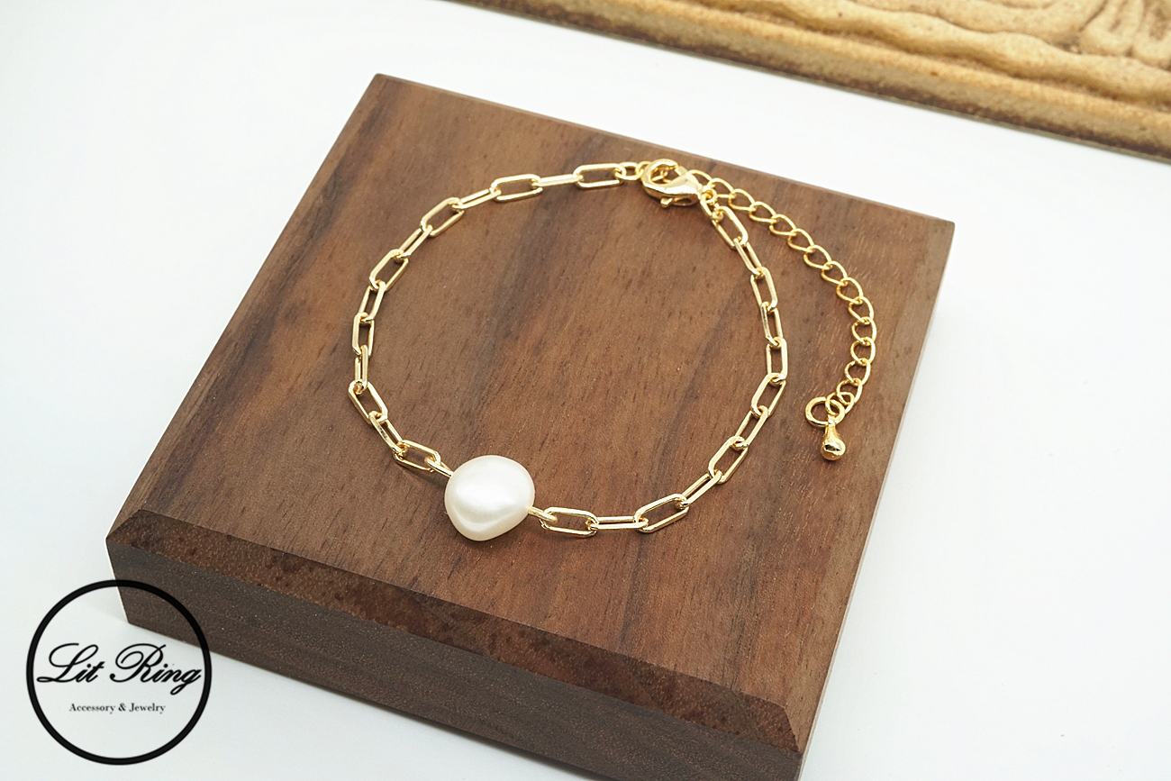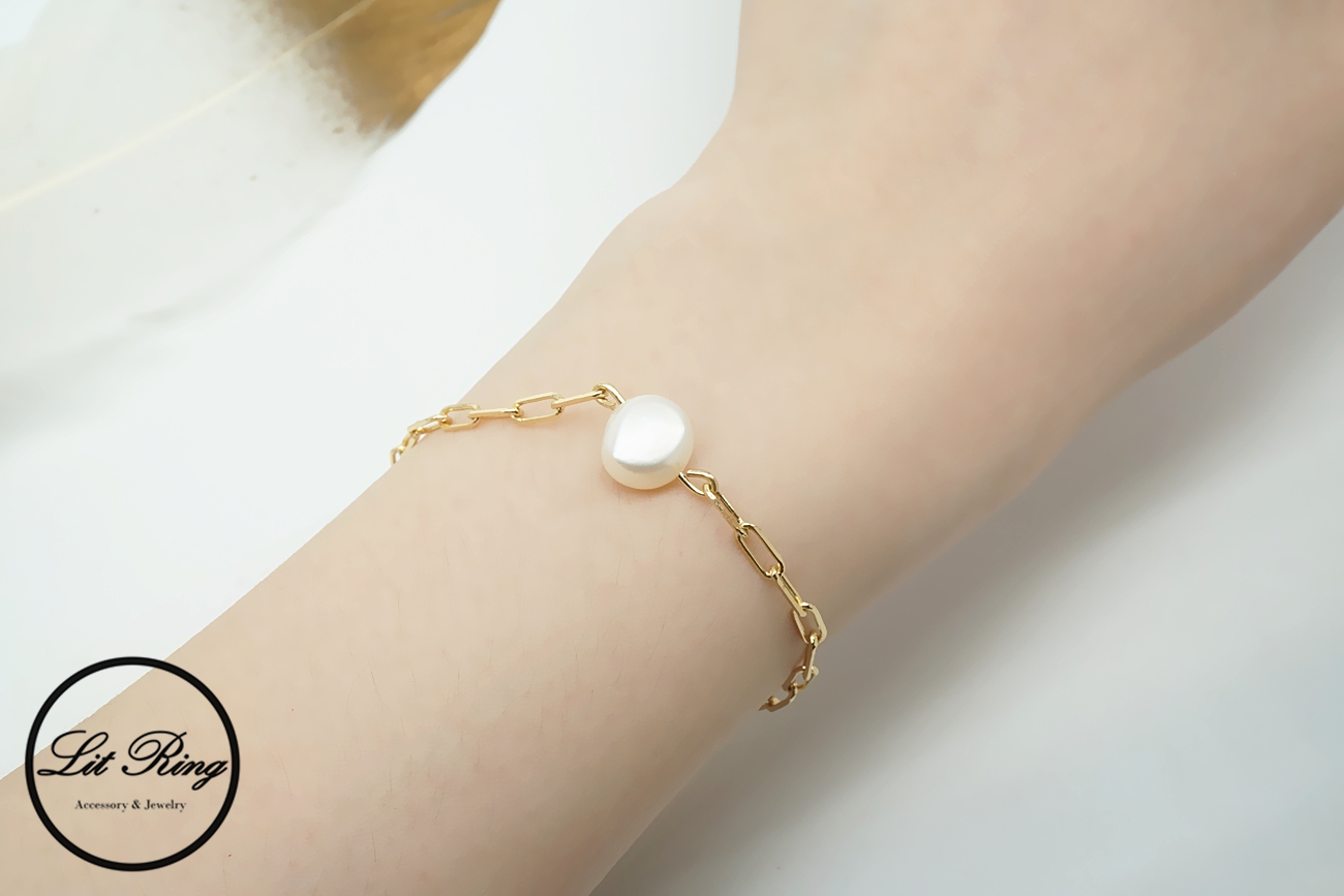 【Lit Ring】14k金銅鍍巴洛克珍珠手鍊