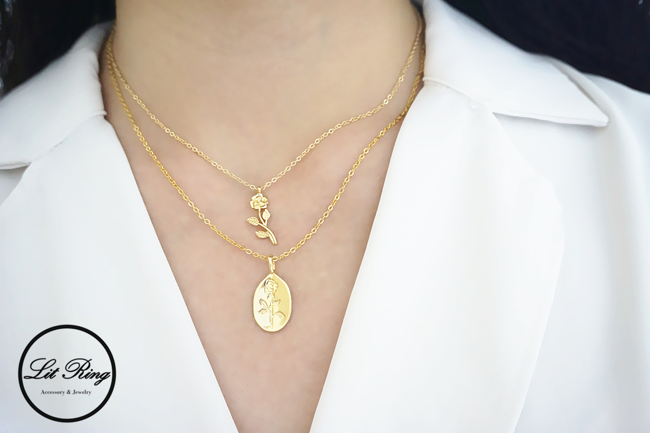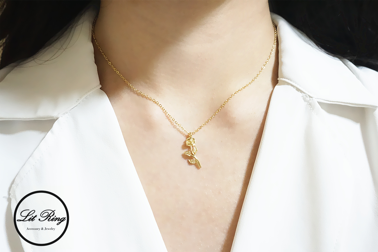 【Lit Ring】14k金銅鍍盛開的薔薇項鍊