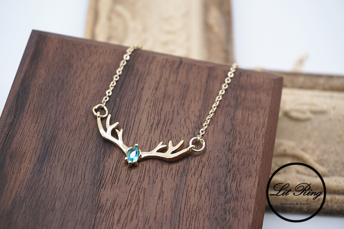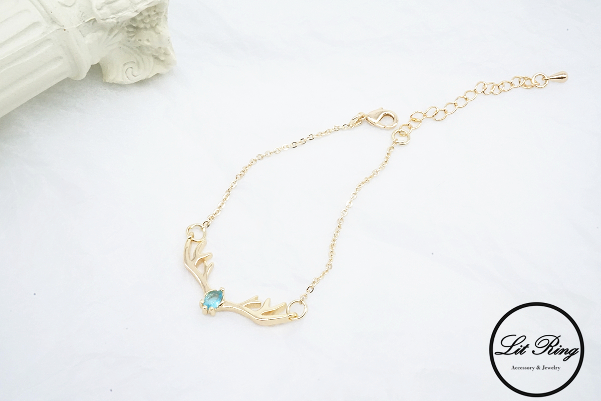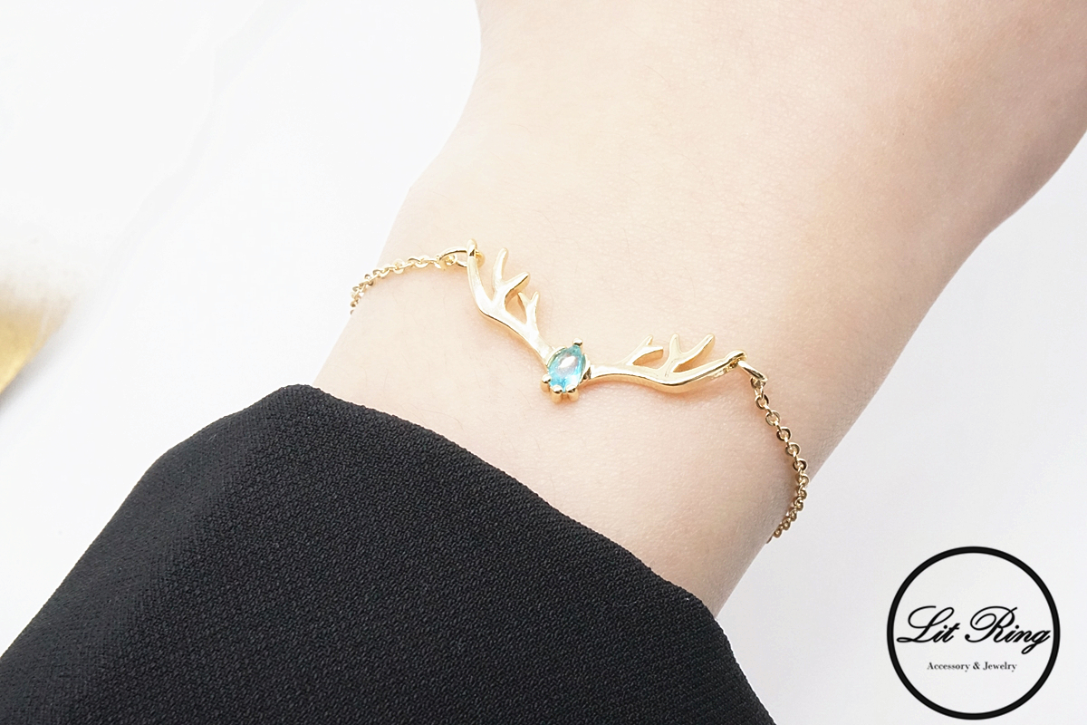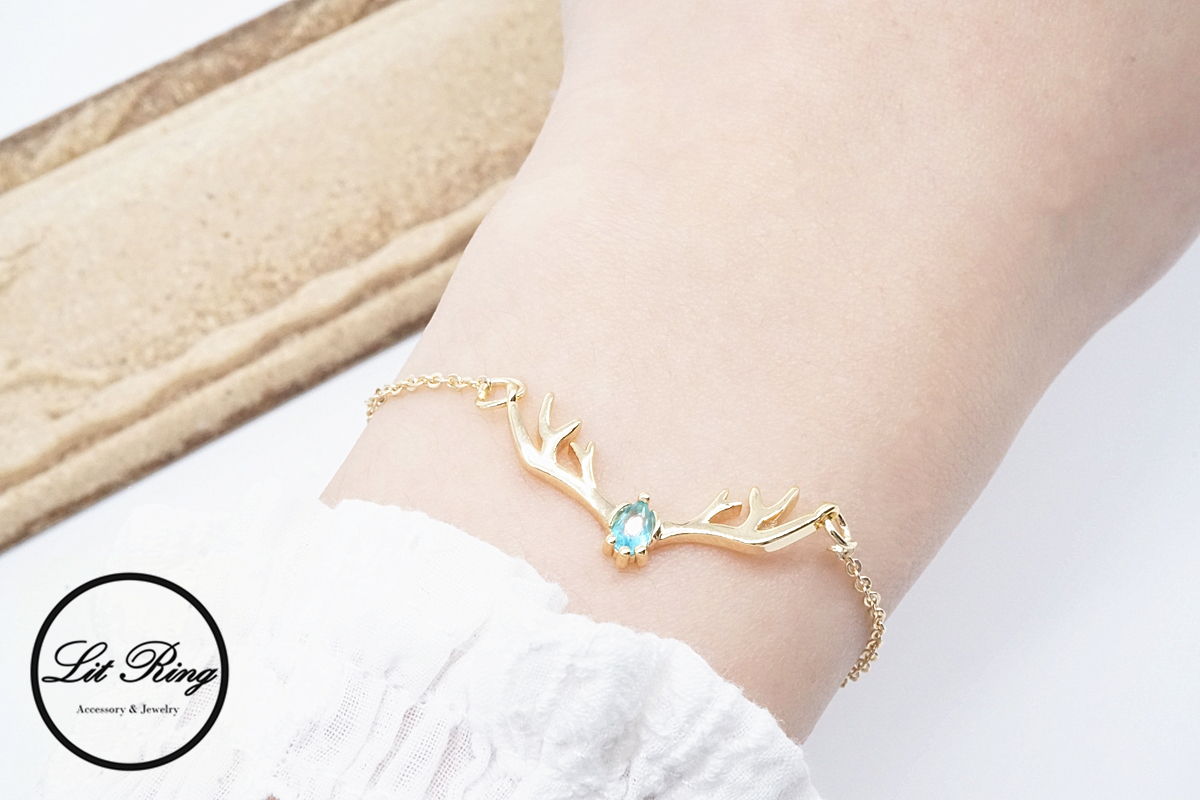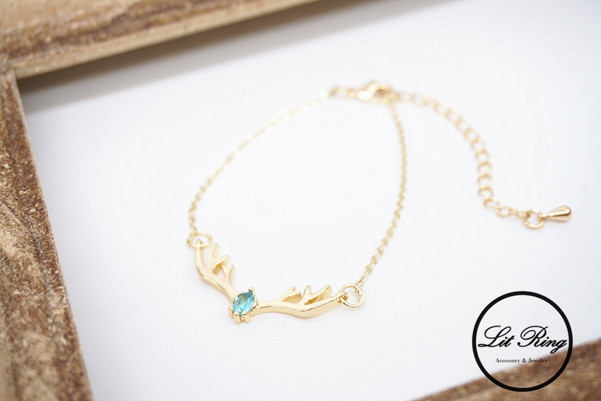 【Lit Ring】14k金銅鍍鹿角藍鑽手鍊