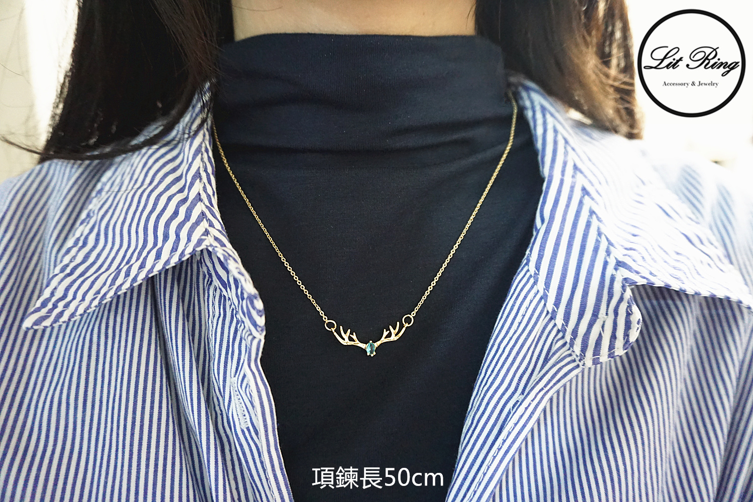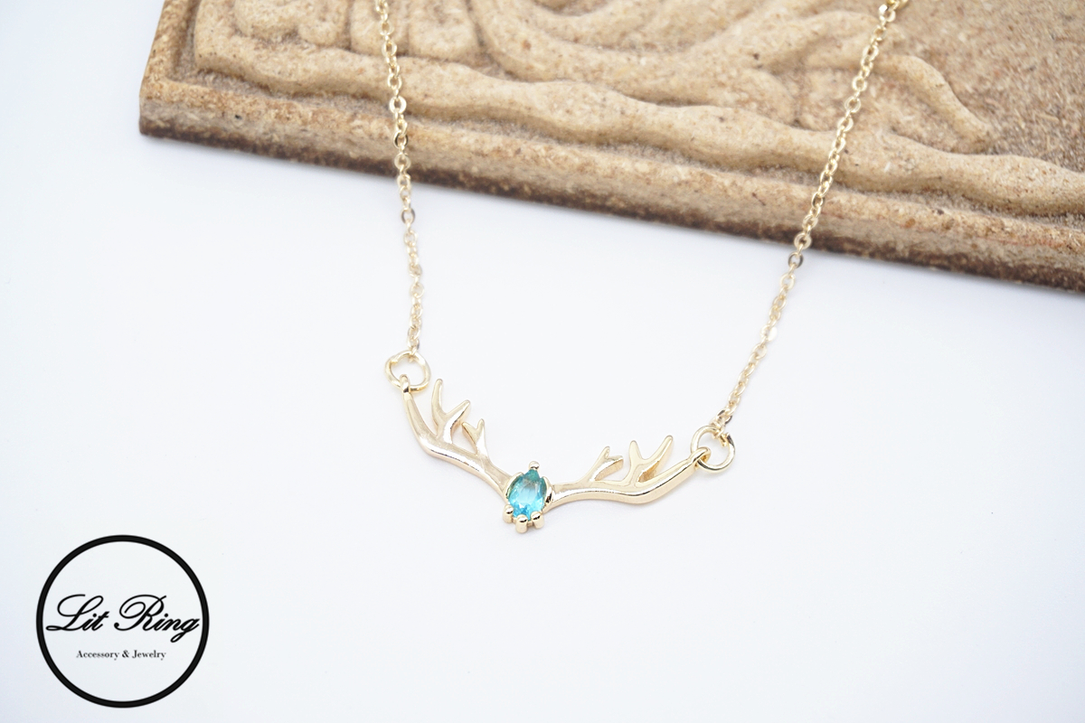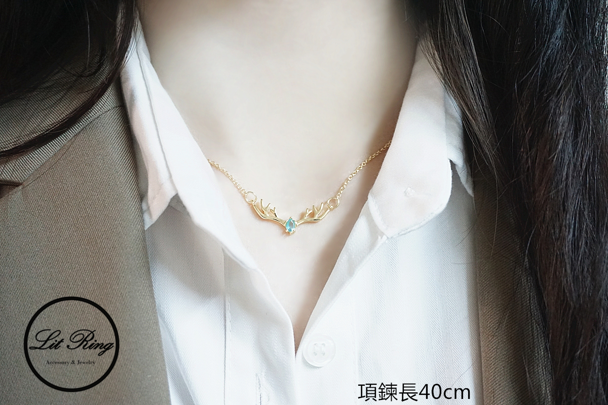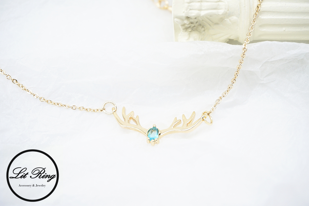 【Lit Ring】14k金銅鍍鹿角藍鑽項鍊