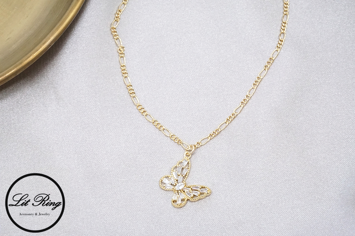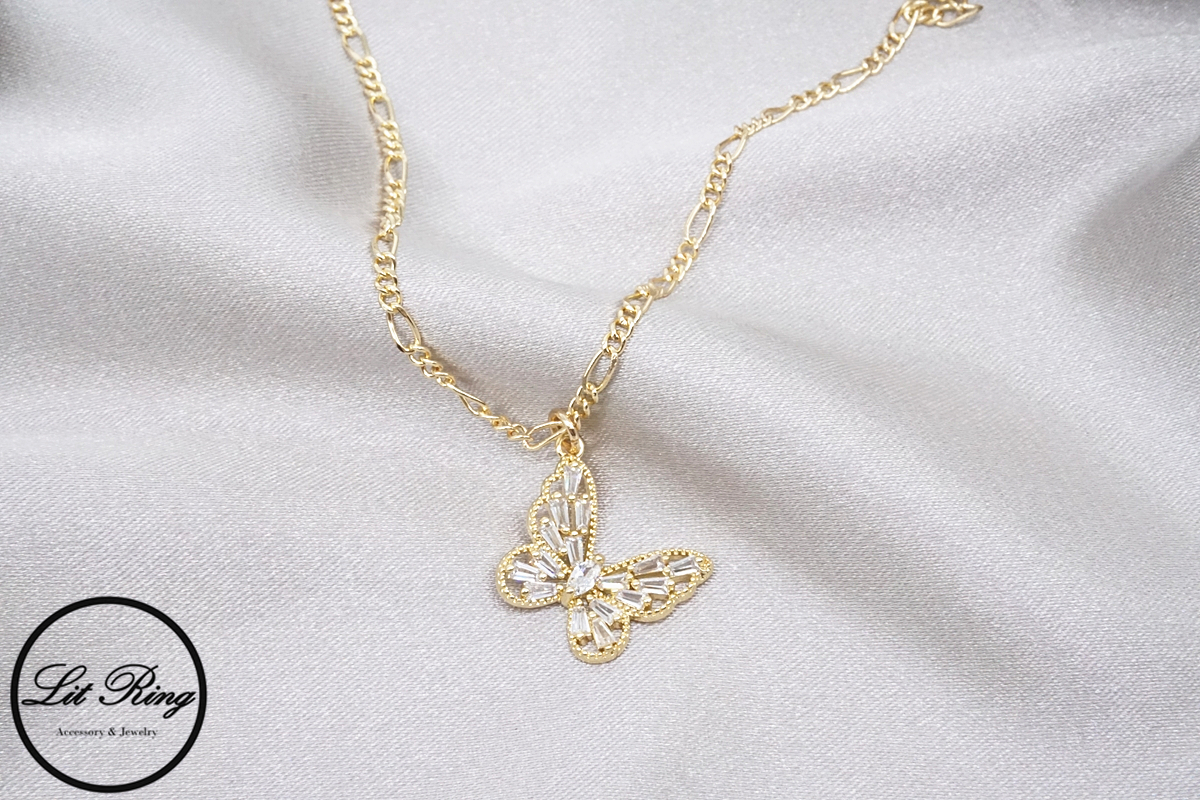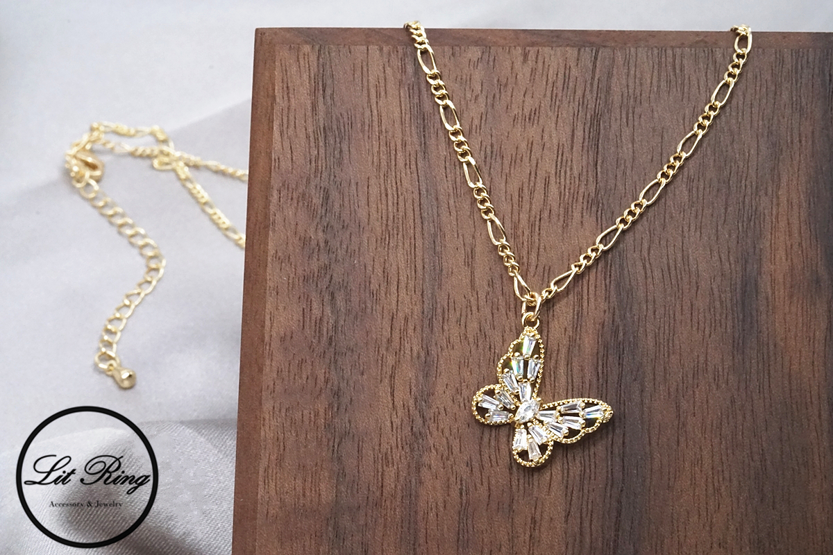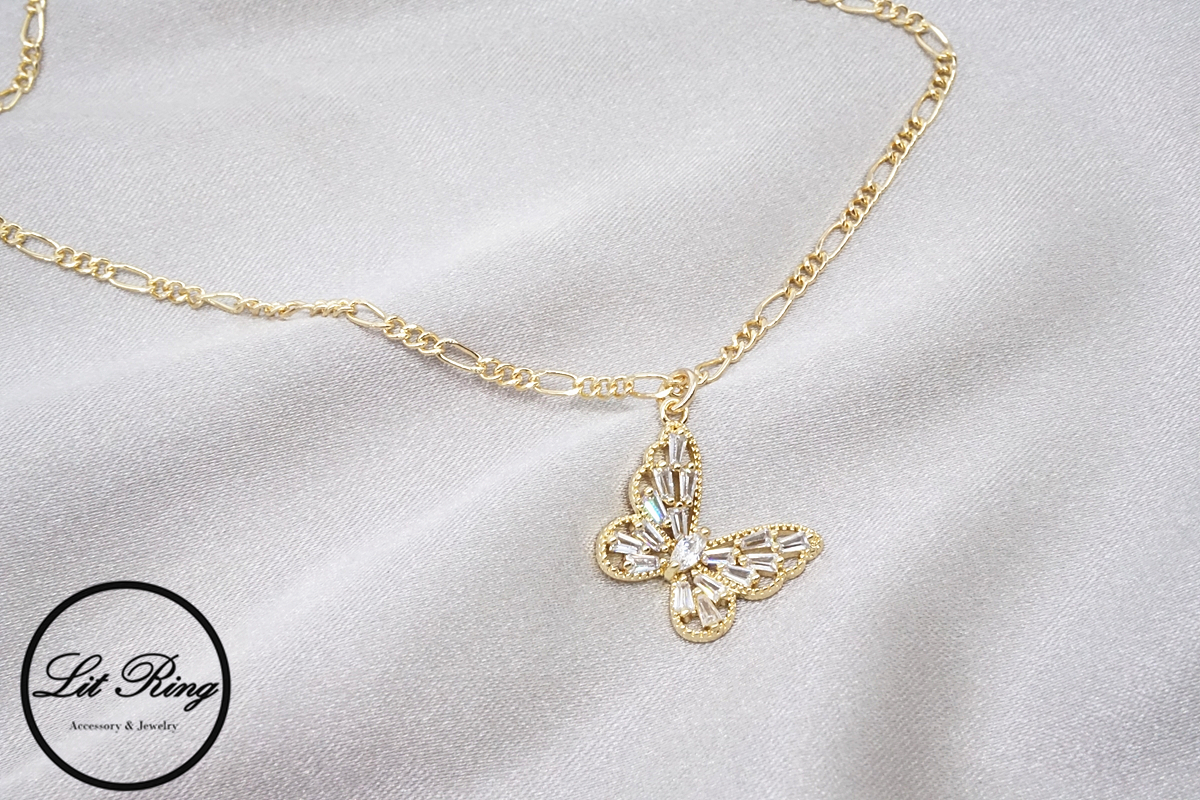 【Lit Ring】14K金銅鍍晶燦蝴蝶項鍊