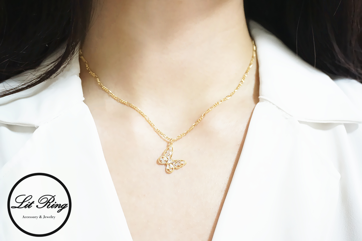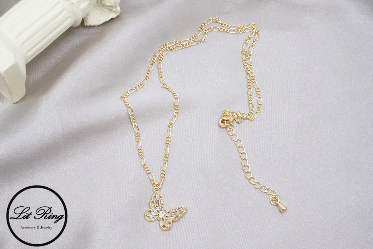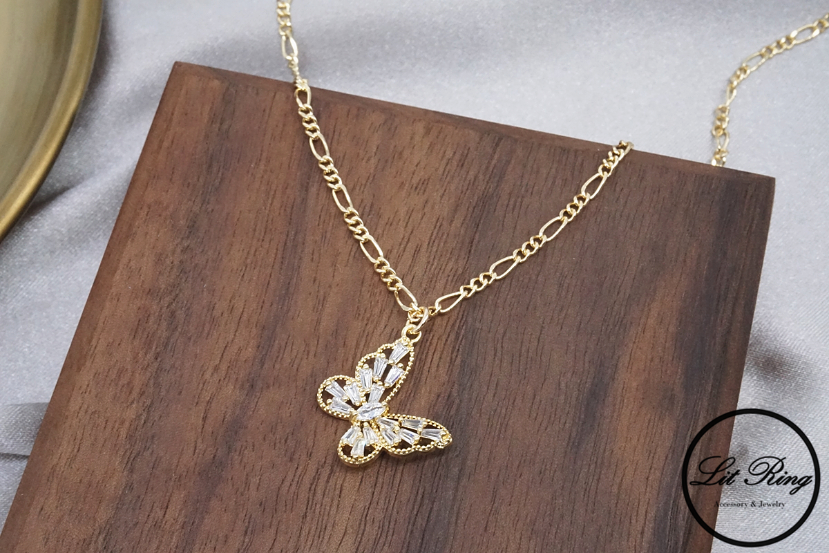 【Lit Ring】14K金銅鍍晶燦蝴蝶項鍊