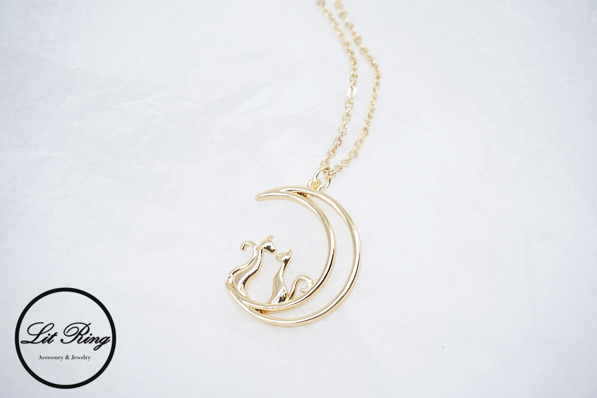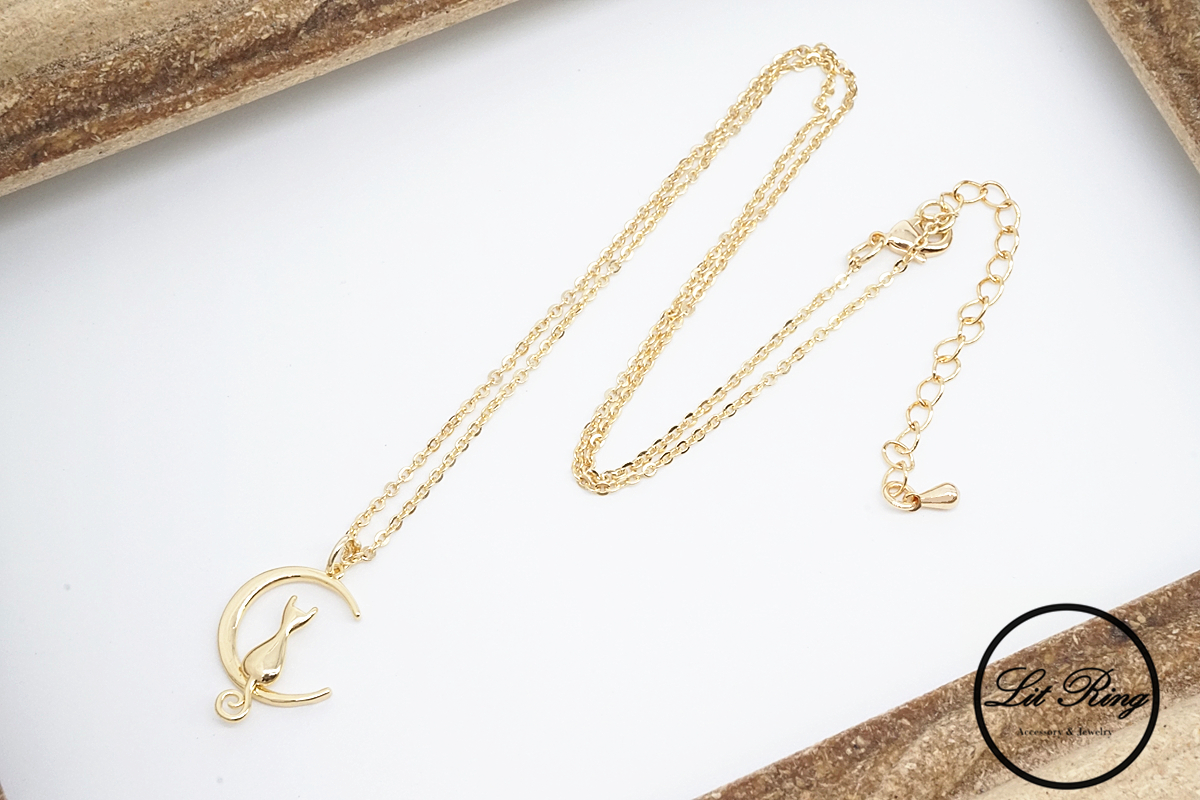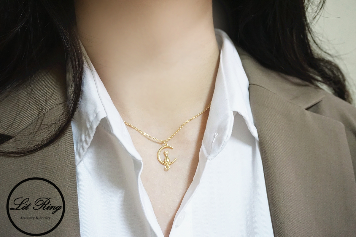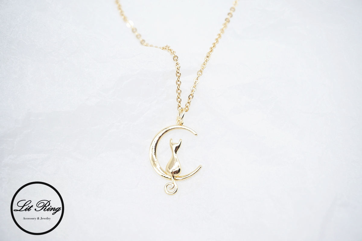 【Lit Ring】14k金銅鍍月亮貓項鍊