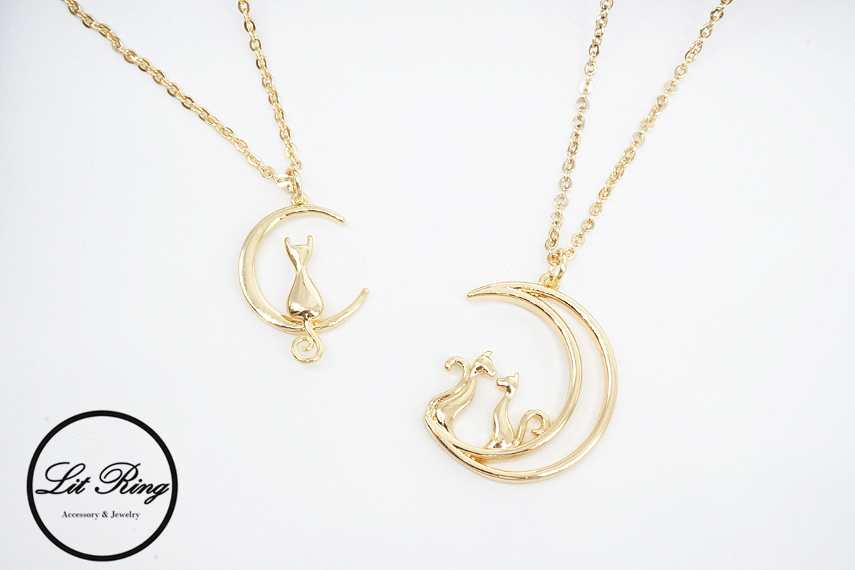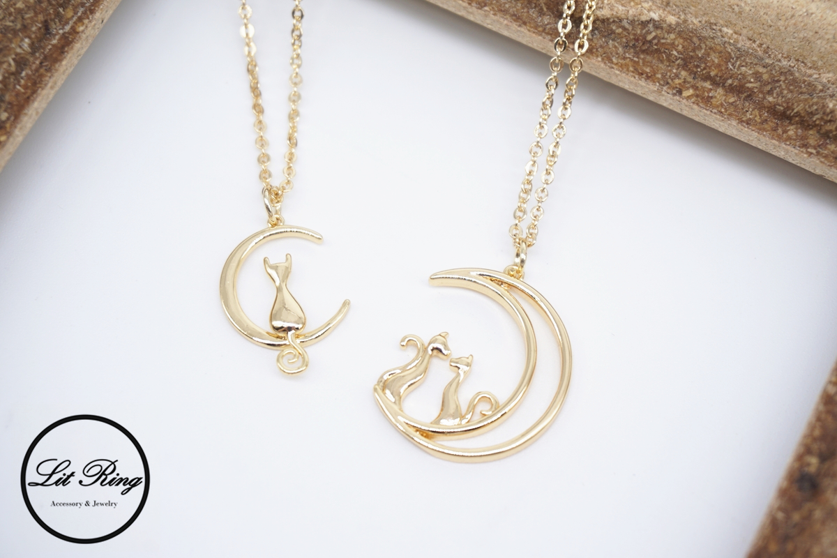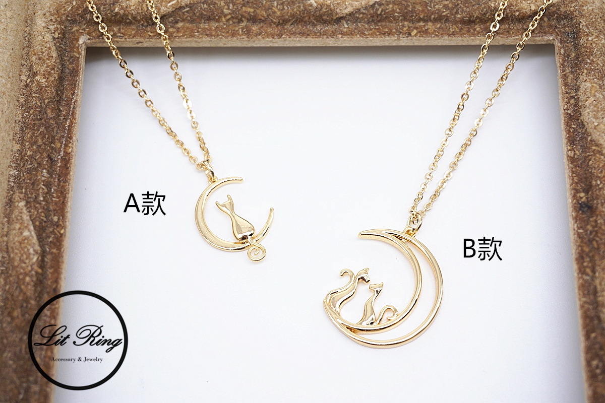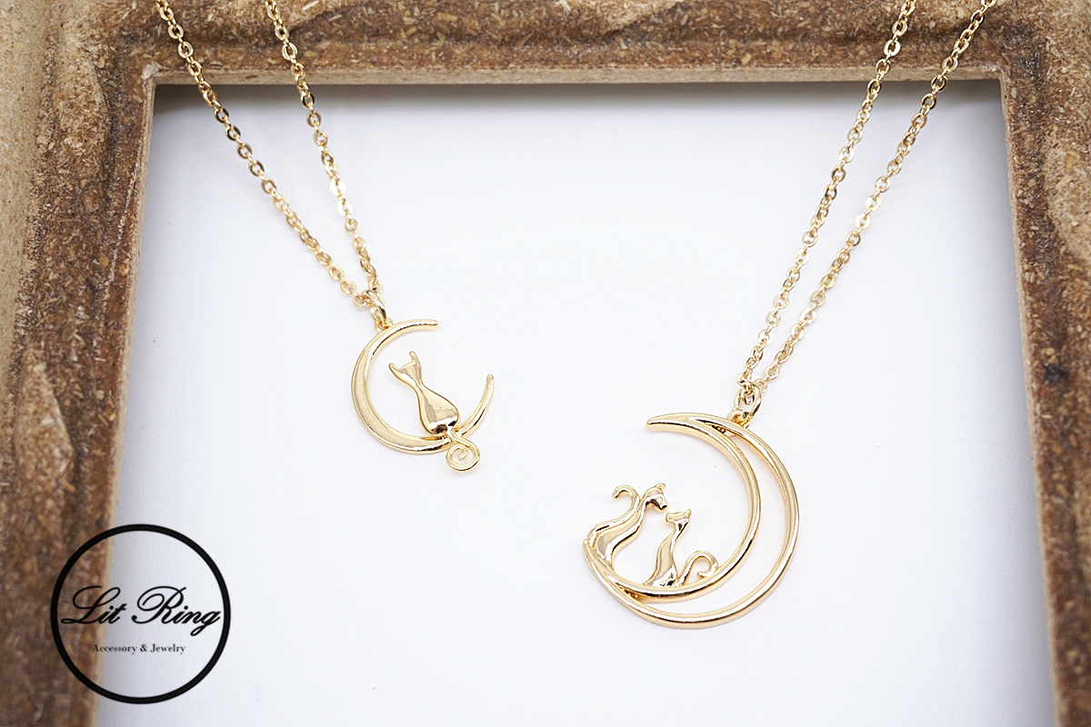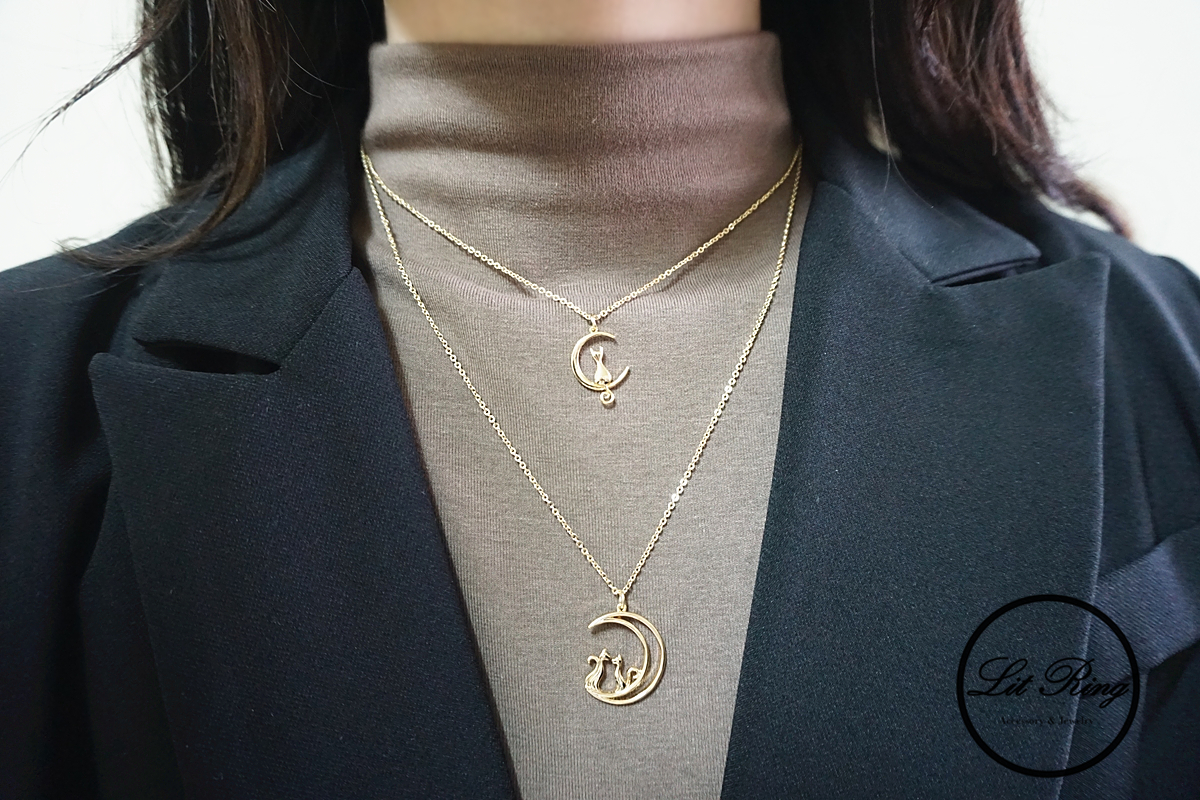 【Lit Ring】14k金銅鍍月亮貓項鍊