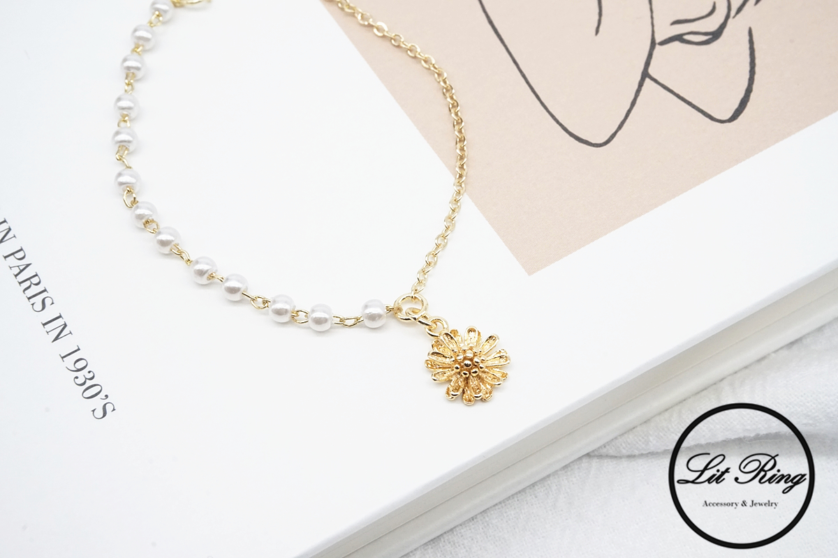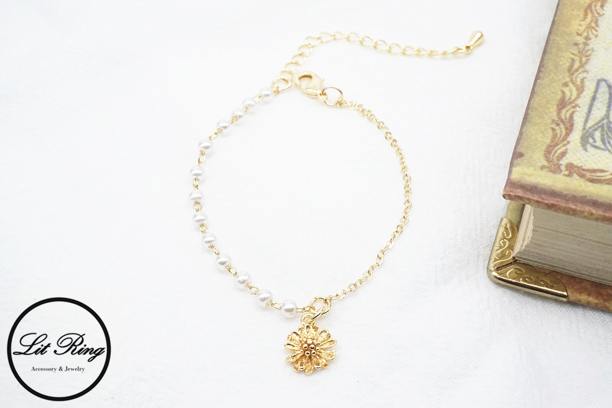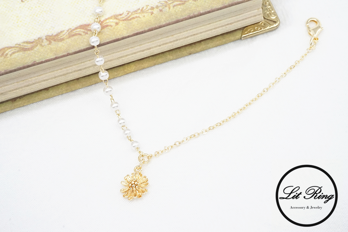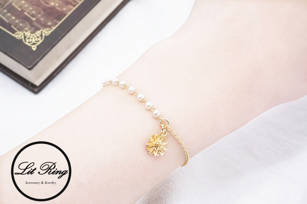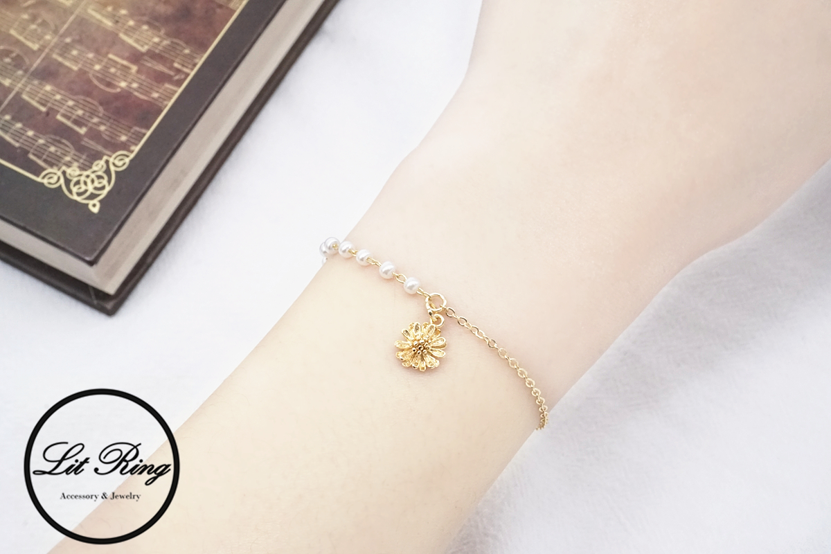【Lit Ring】14K金銅鍍小雛菊珍珠手鍊