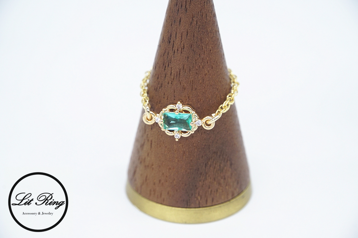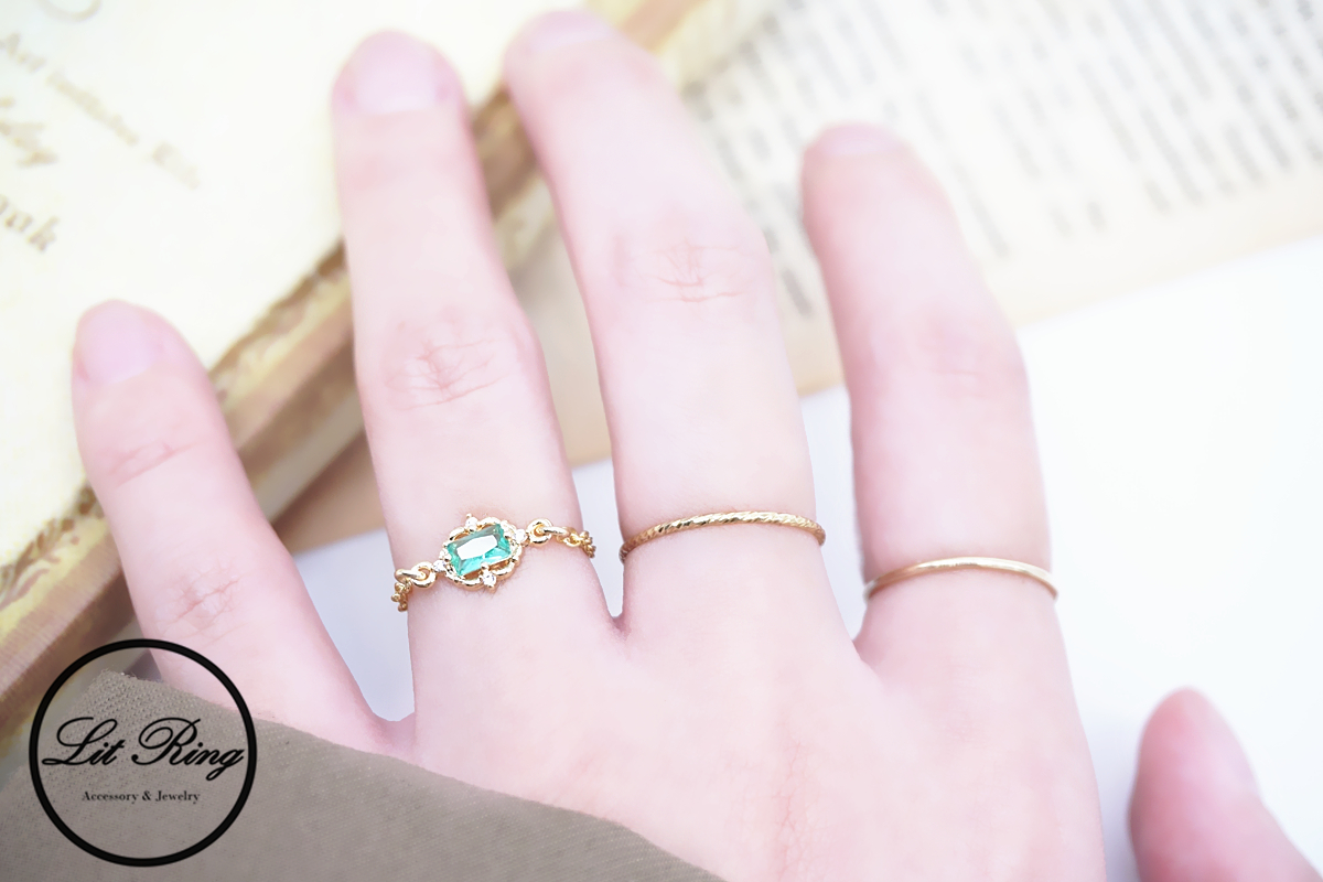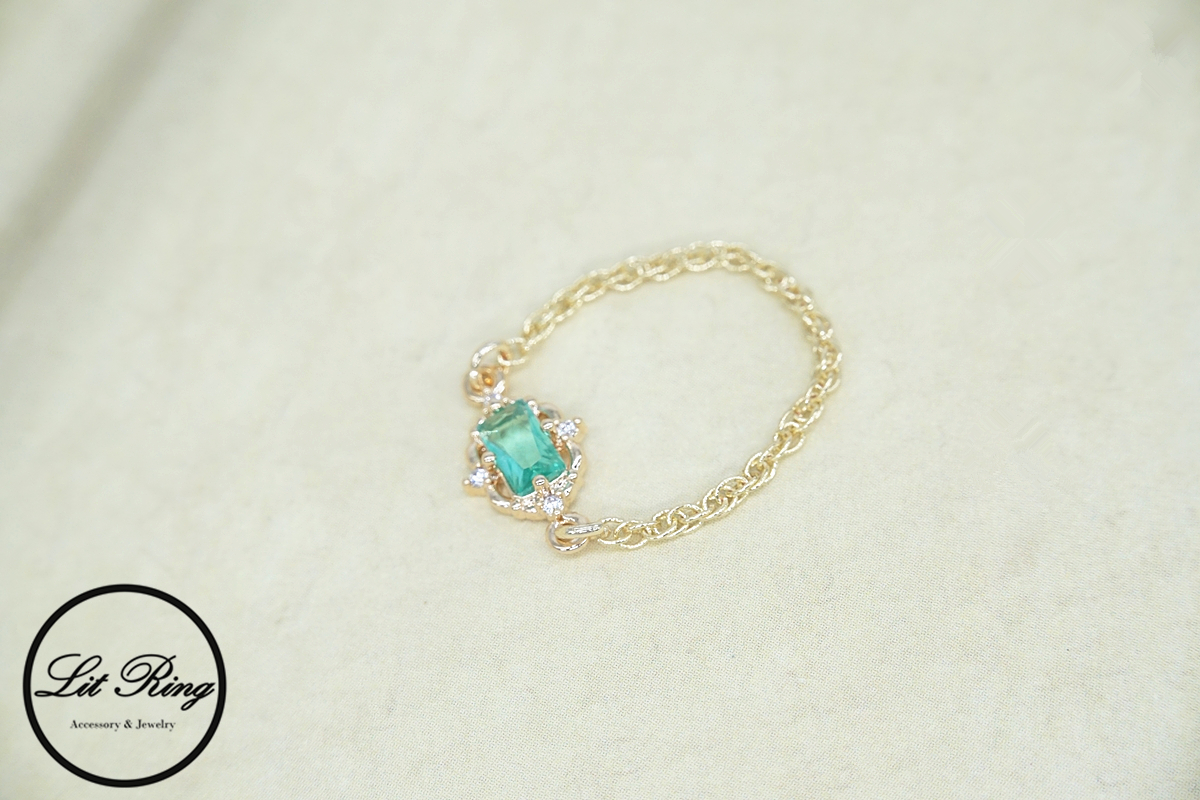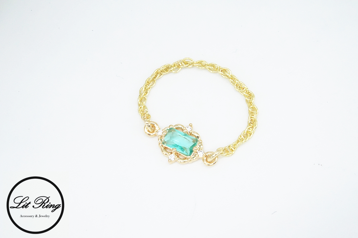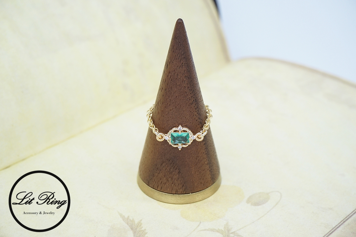 【Lit Ring】14k金銅鍍湖水綠鋯石鍊戒