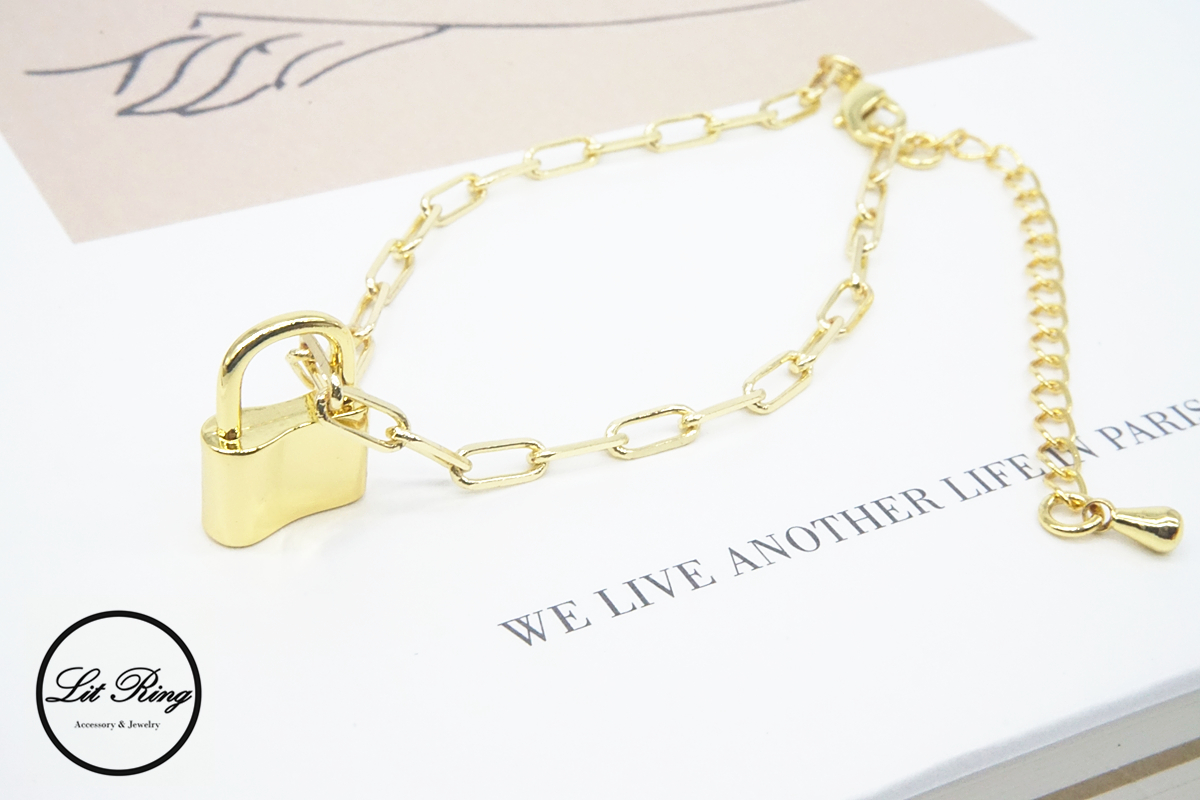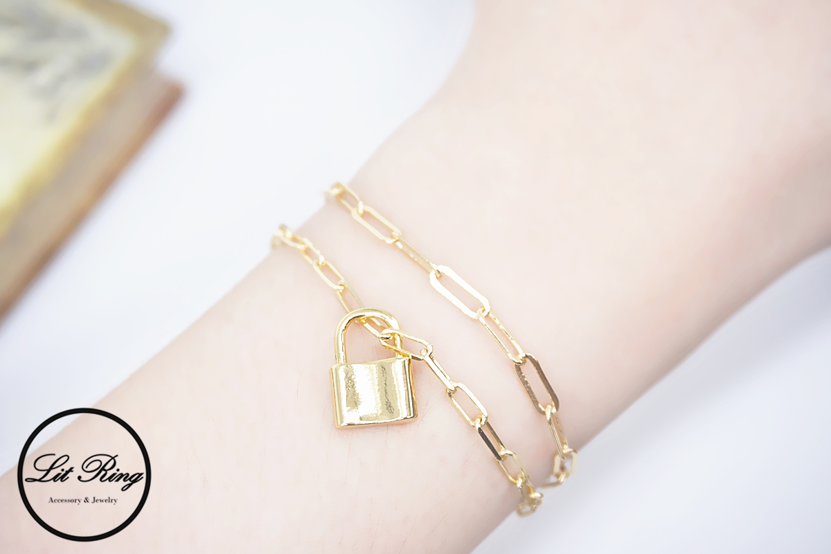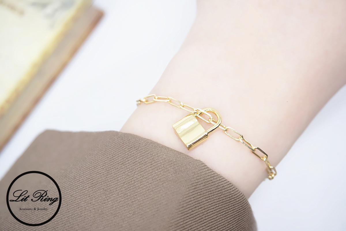 此款手鍊以簡約俐落的設計,強調金鎖的優雅質感