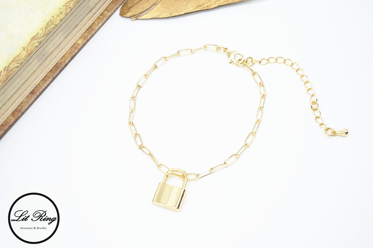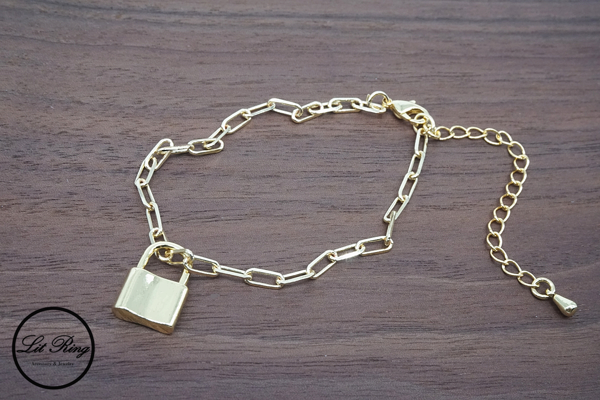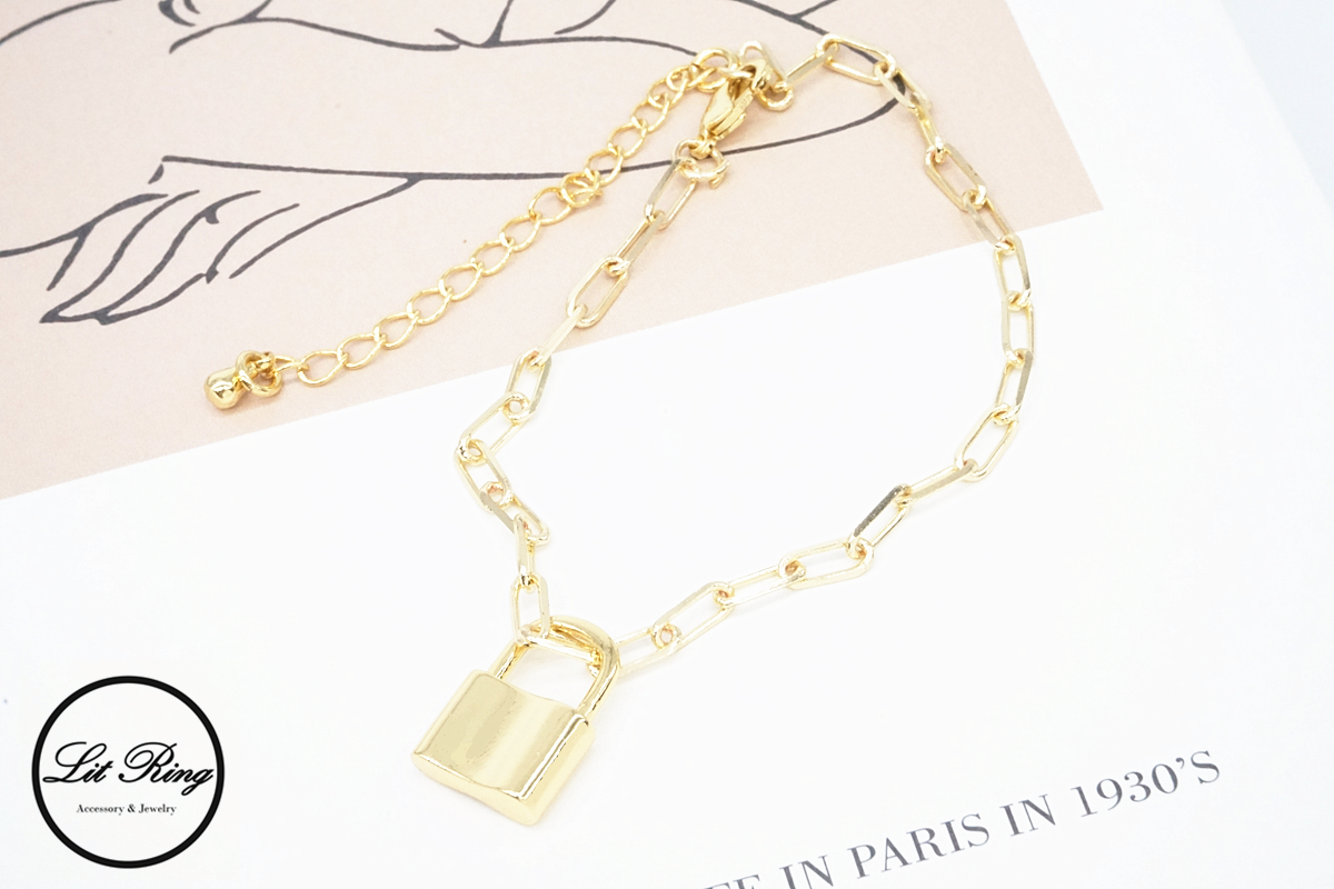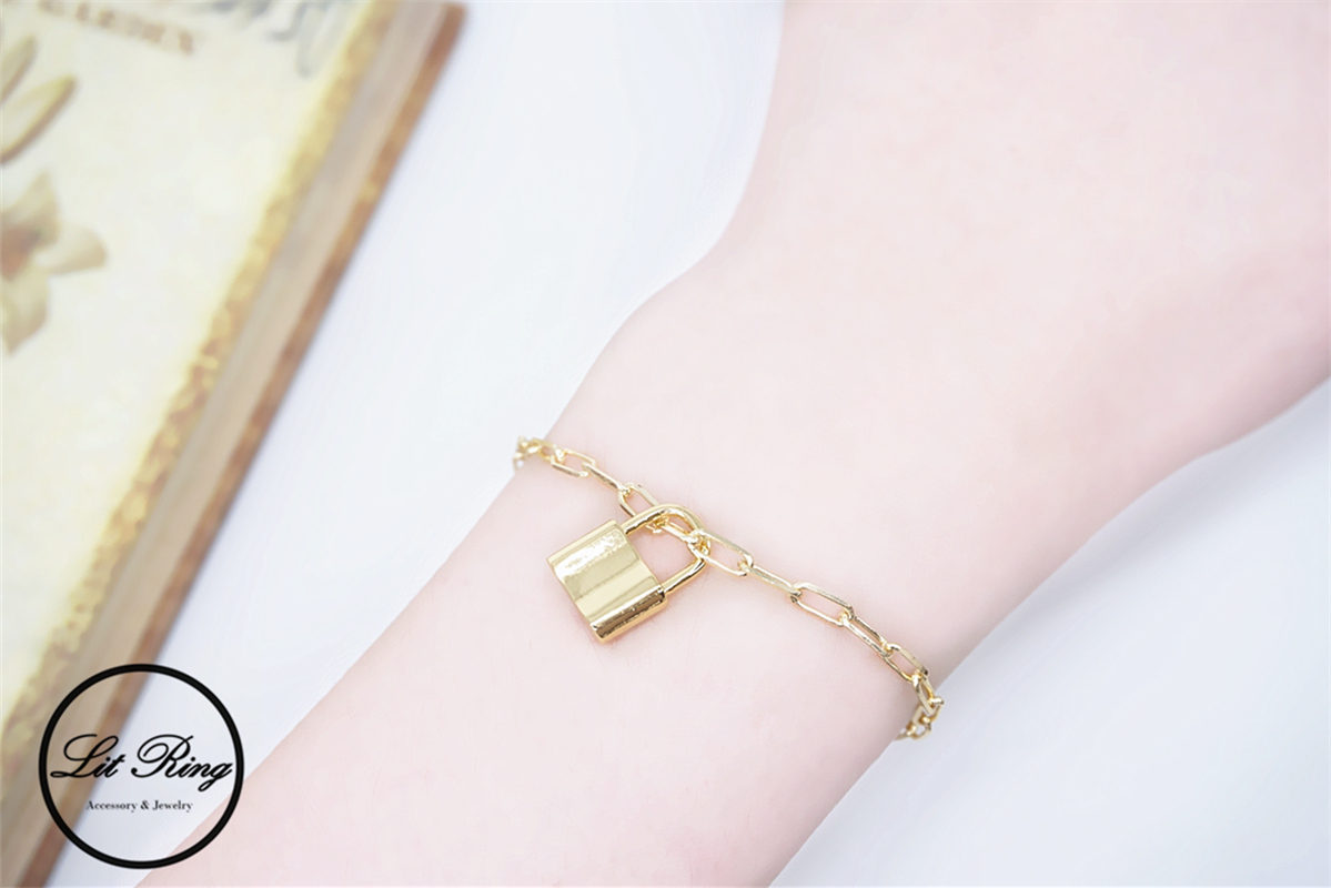 此款手鍊以簡約俐落的設計,強調金鎖的優雅質感