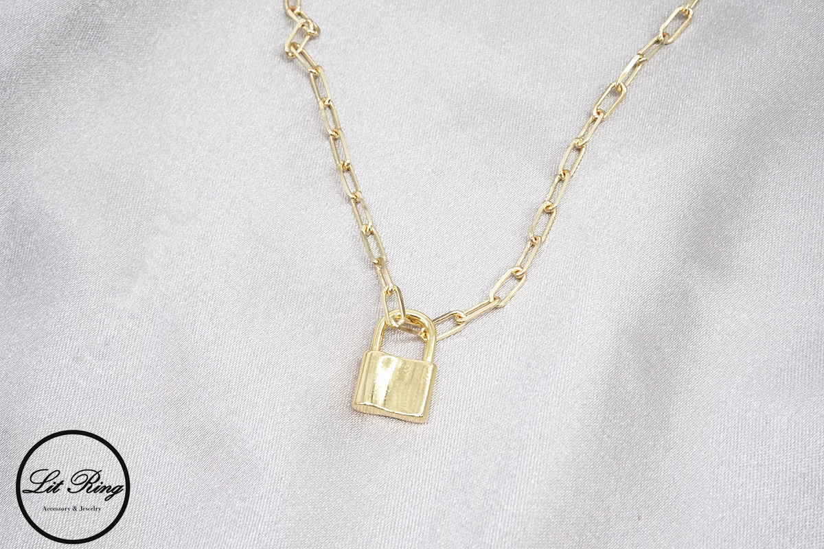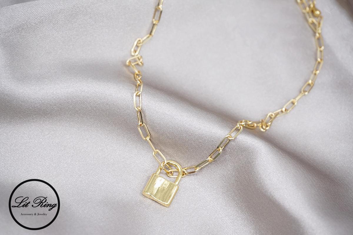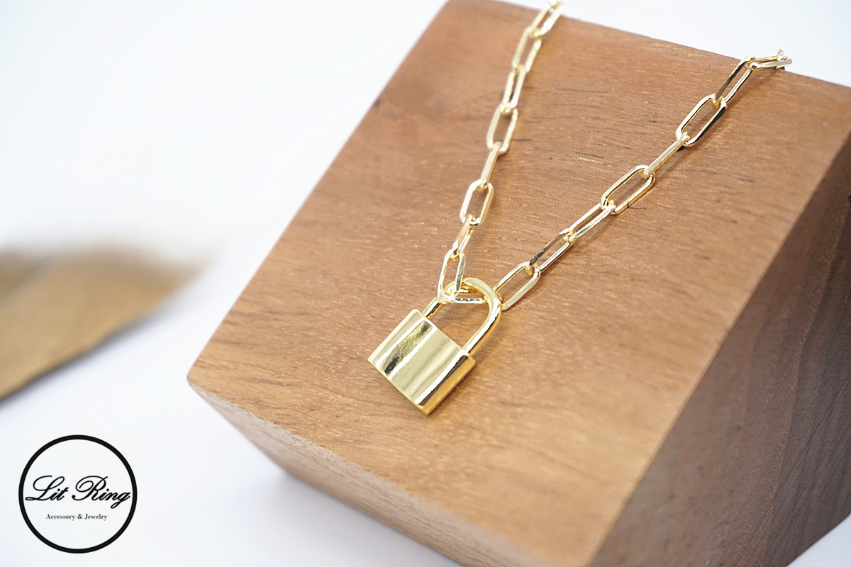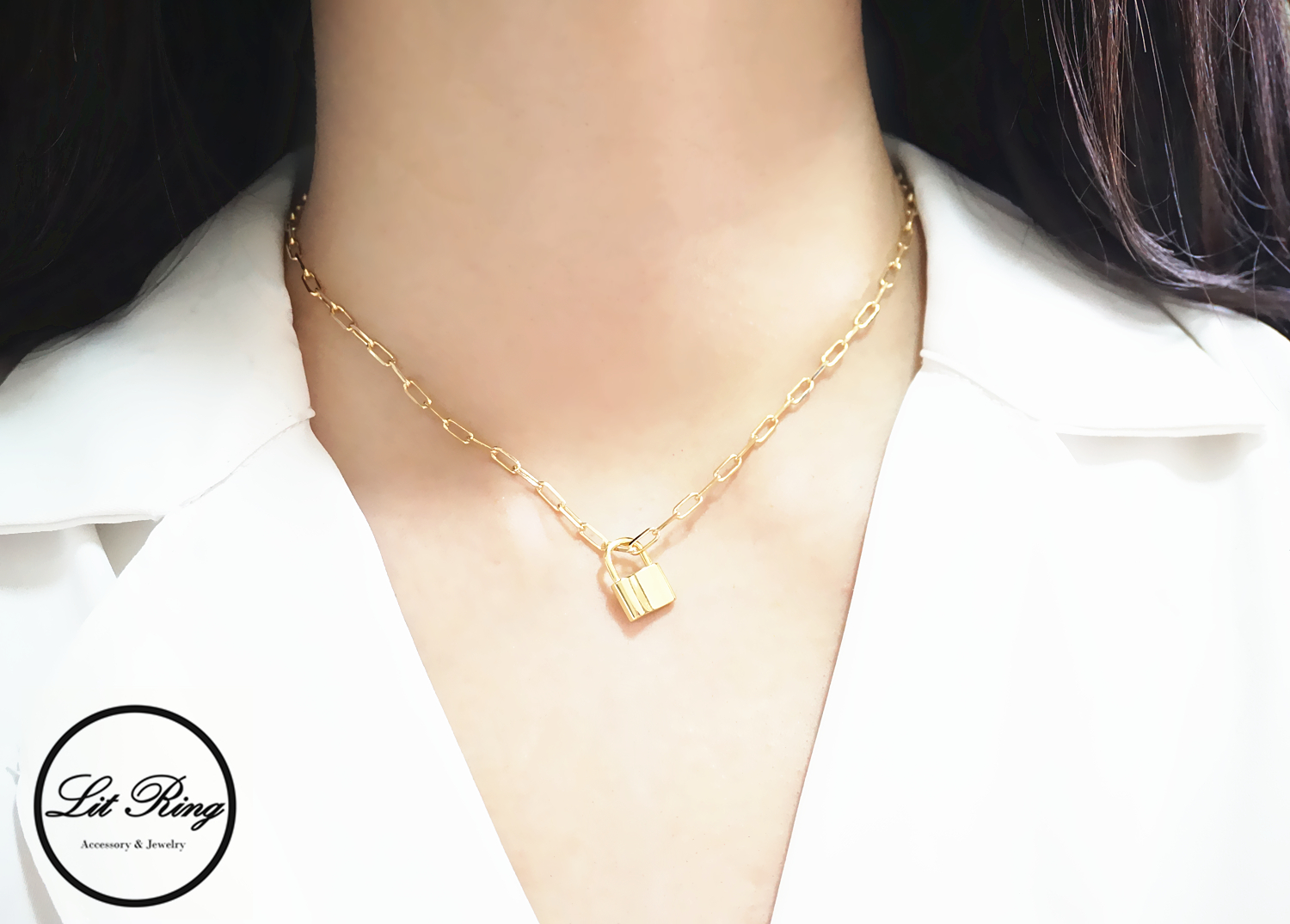 此款項鍊以簡約俐落的設計,強調金鎖的優雅質感