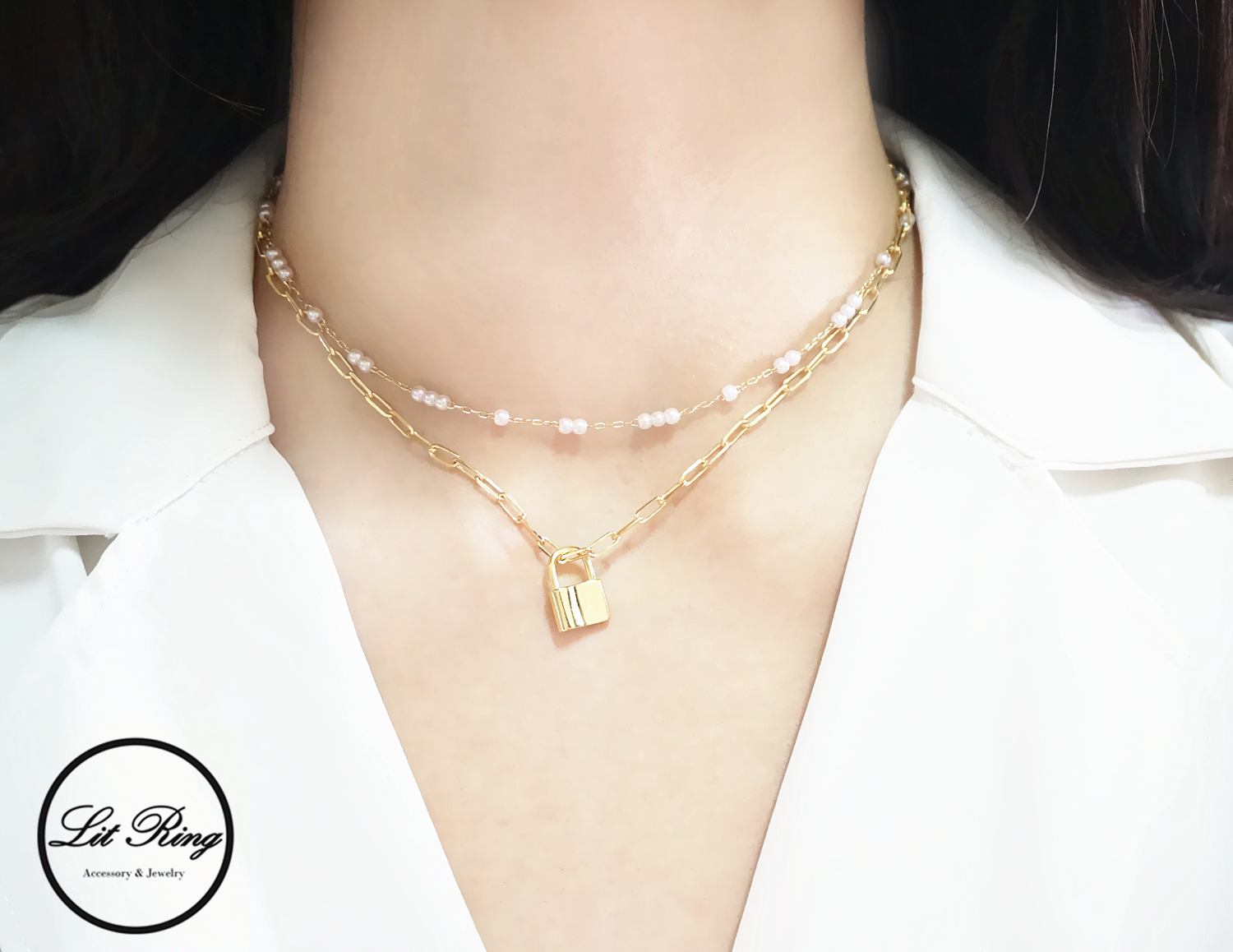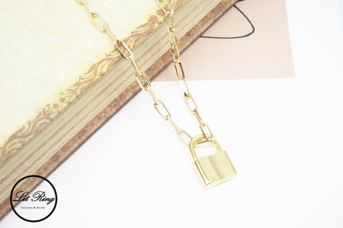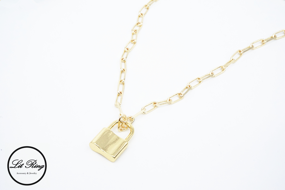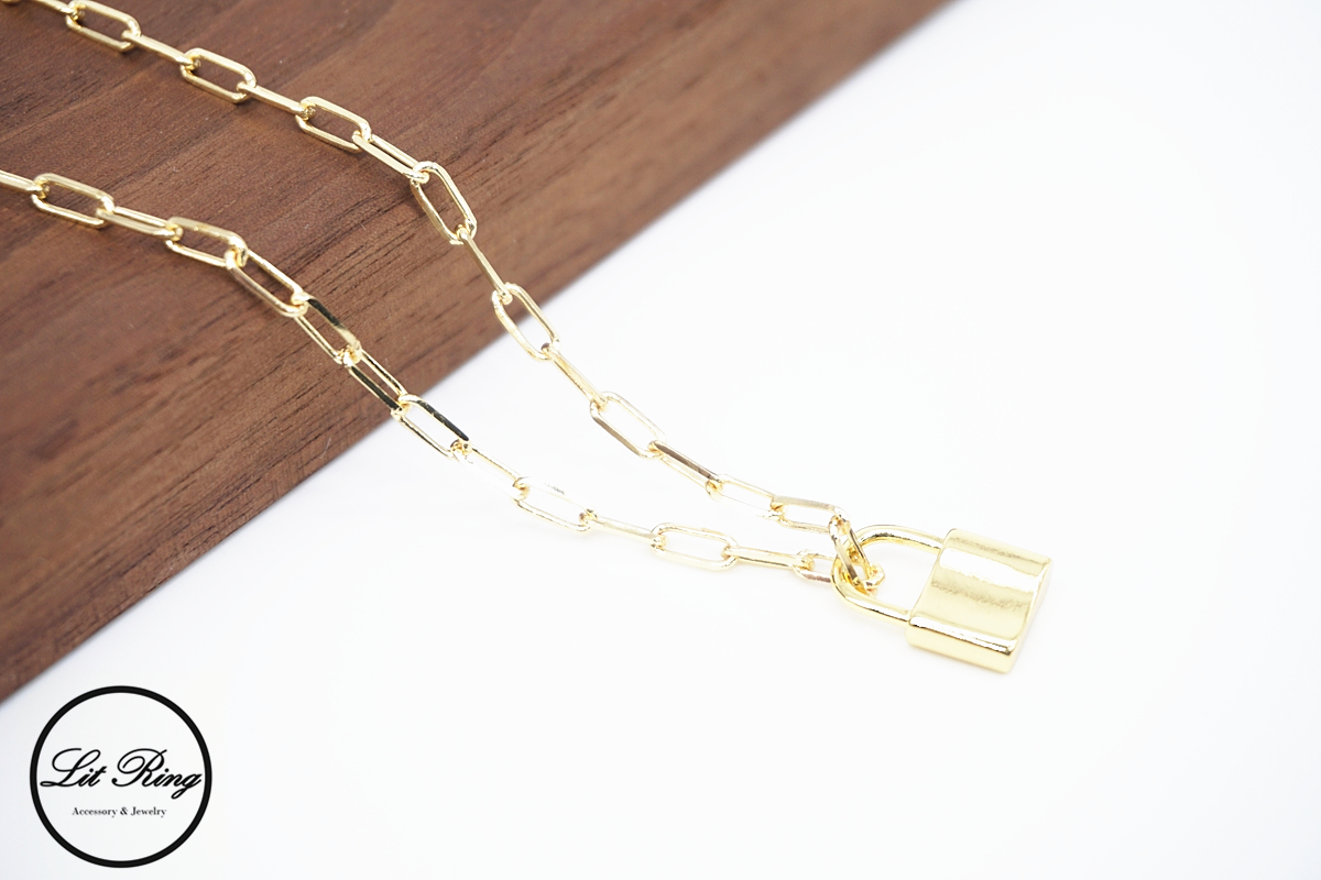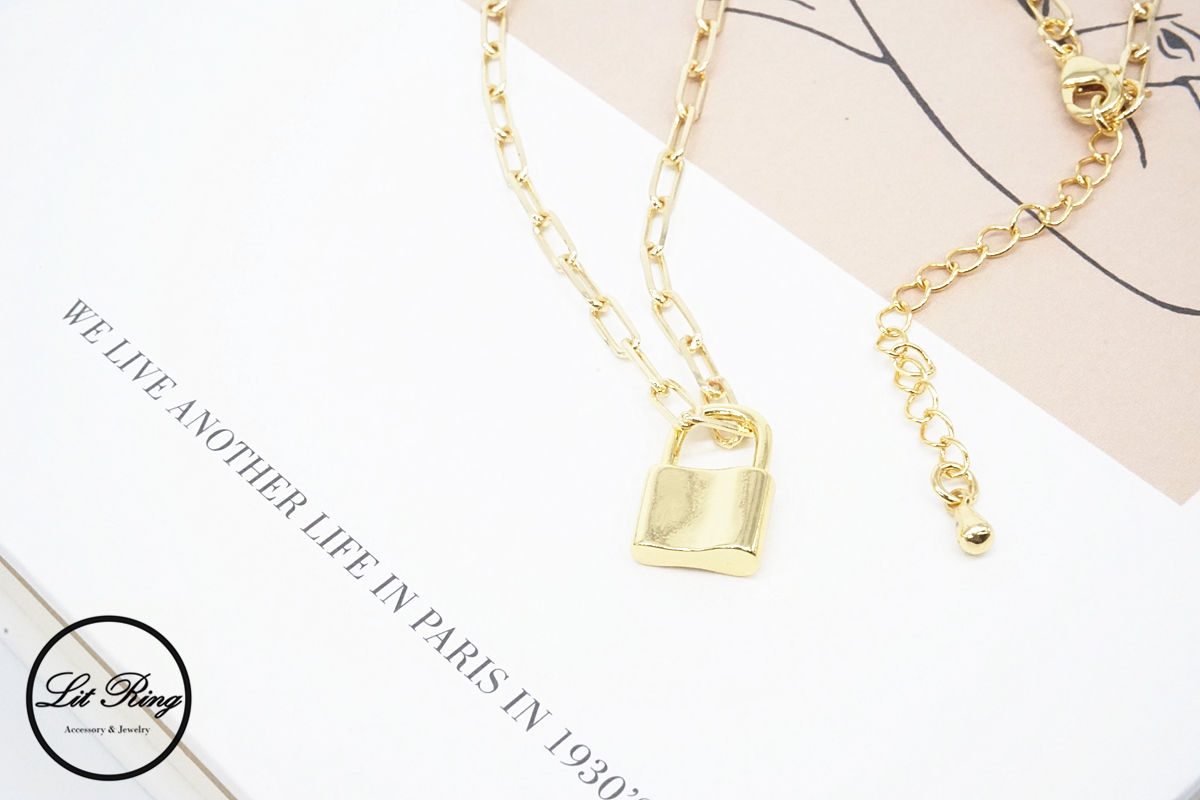 此款項鍊以簡約俐落的設計,強調金鎖的優雅質感