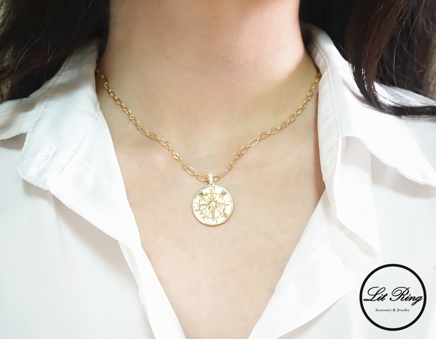【Lit Ring】14k金銅鍍十字星金幣項鍊