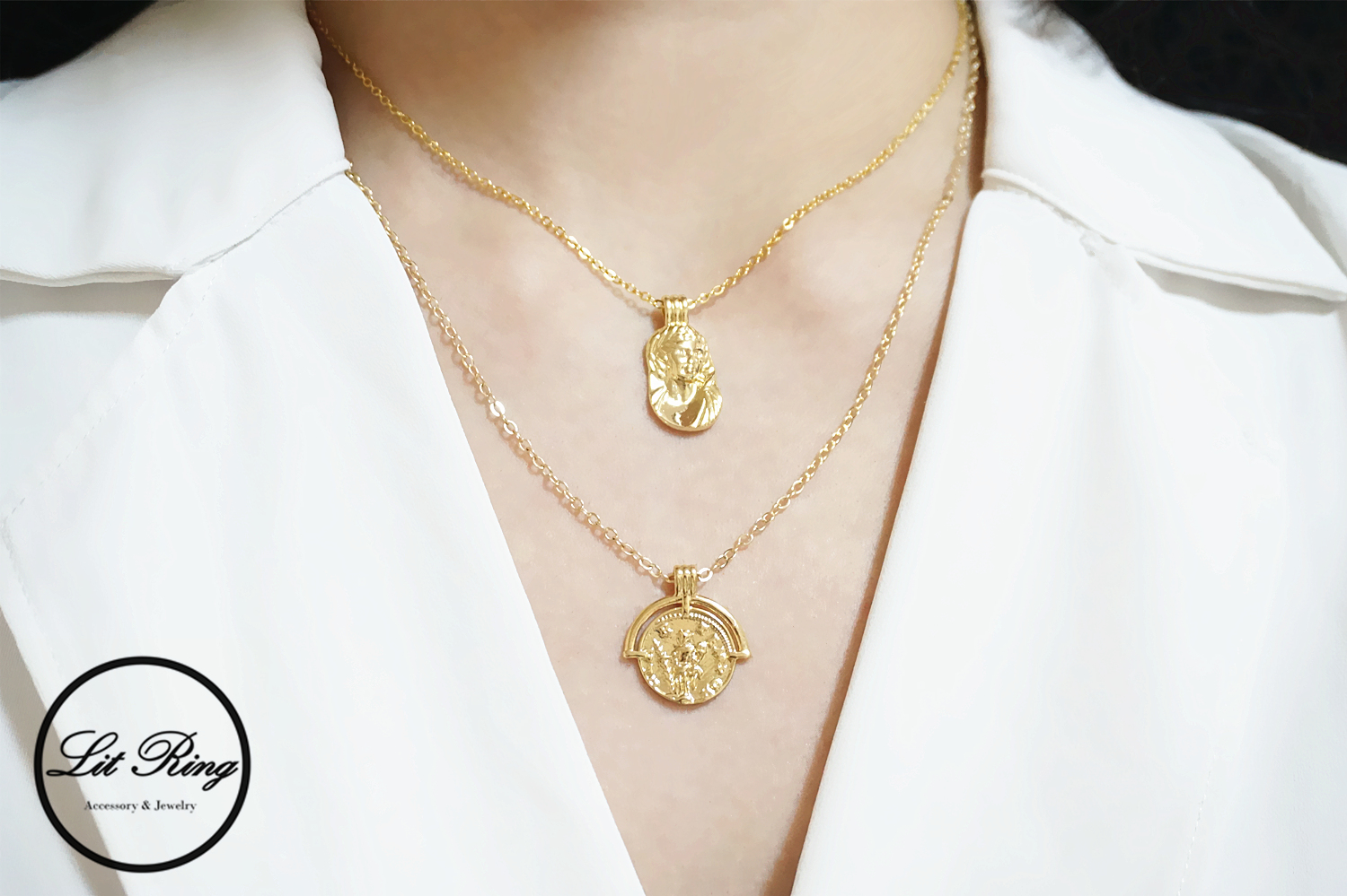 【Lit Ring】18k金銅鍍女神浮雕項鍊