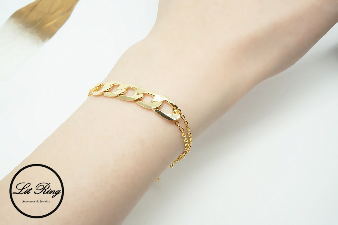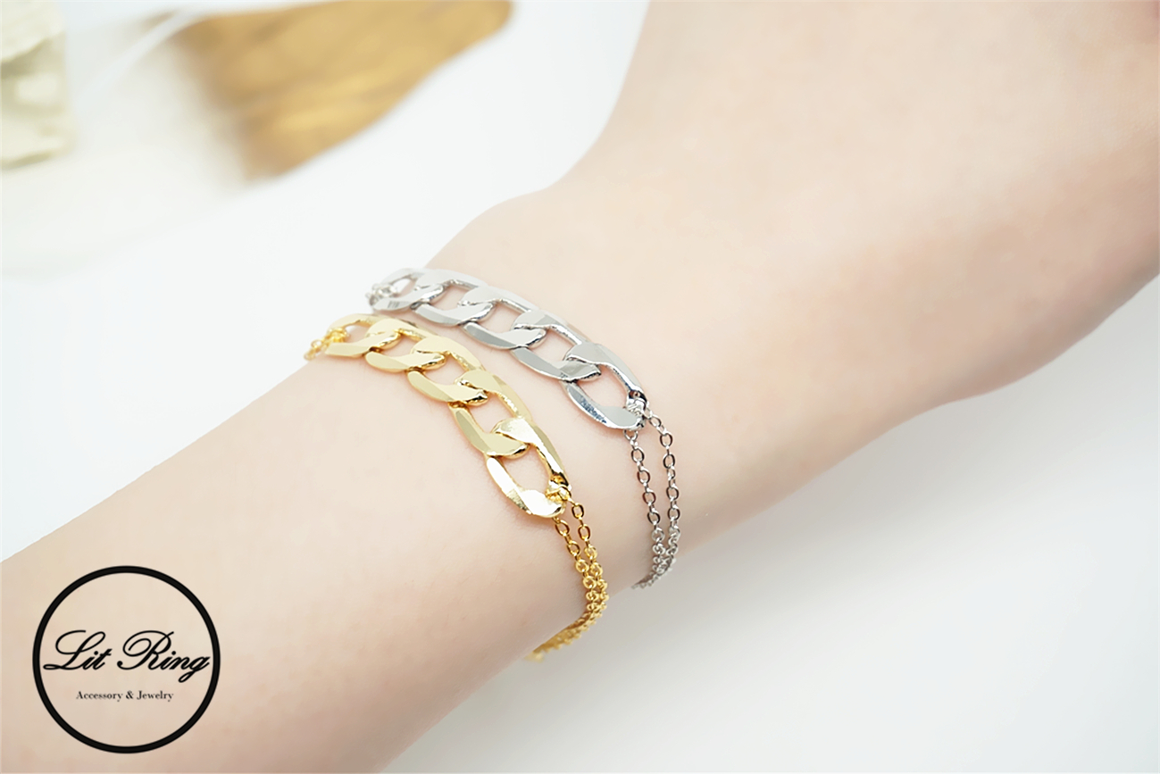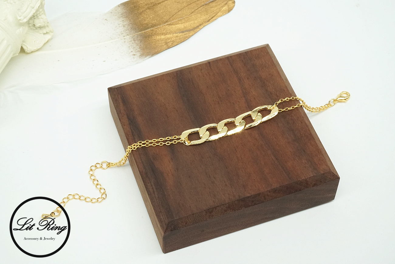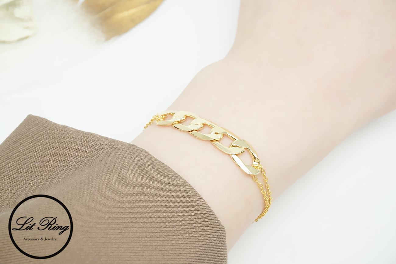 【Lit Ring】18k金銅鍍時髦鎖鏈手鍊