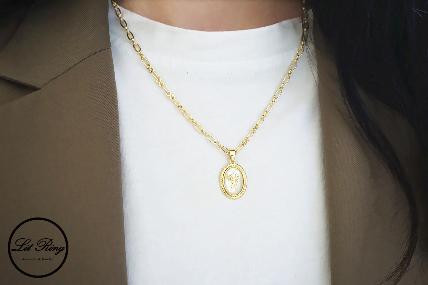 項鍊以銅厚鍍18k金材質訂製而成,加厚電鍍,不易褪色