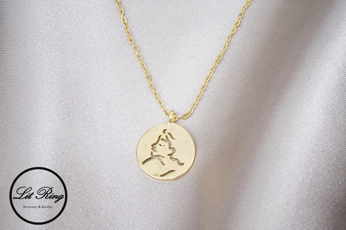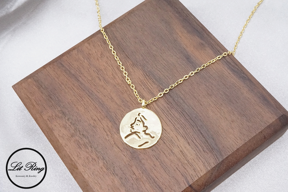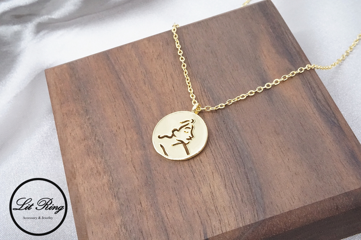 【Lit Ring】18k金銅鍍鏤空少女的畫像項鍊