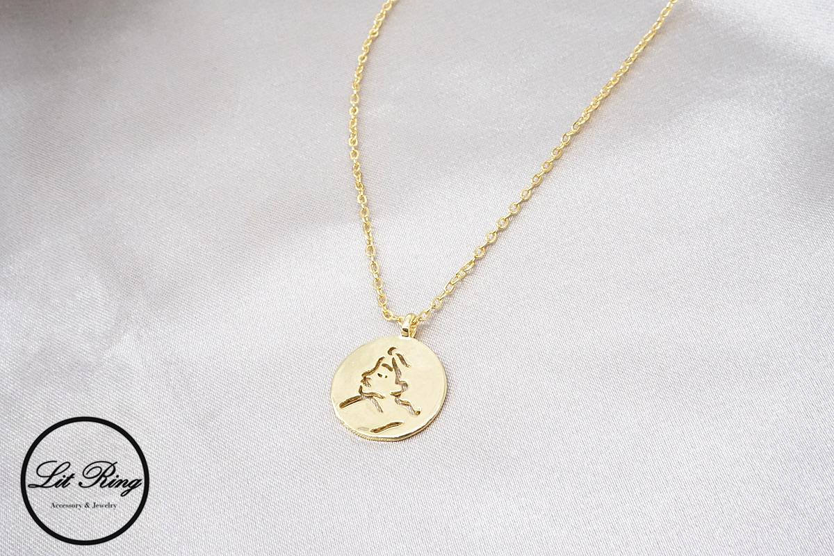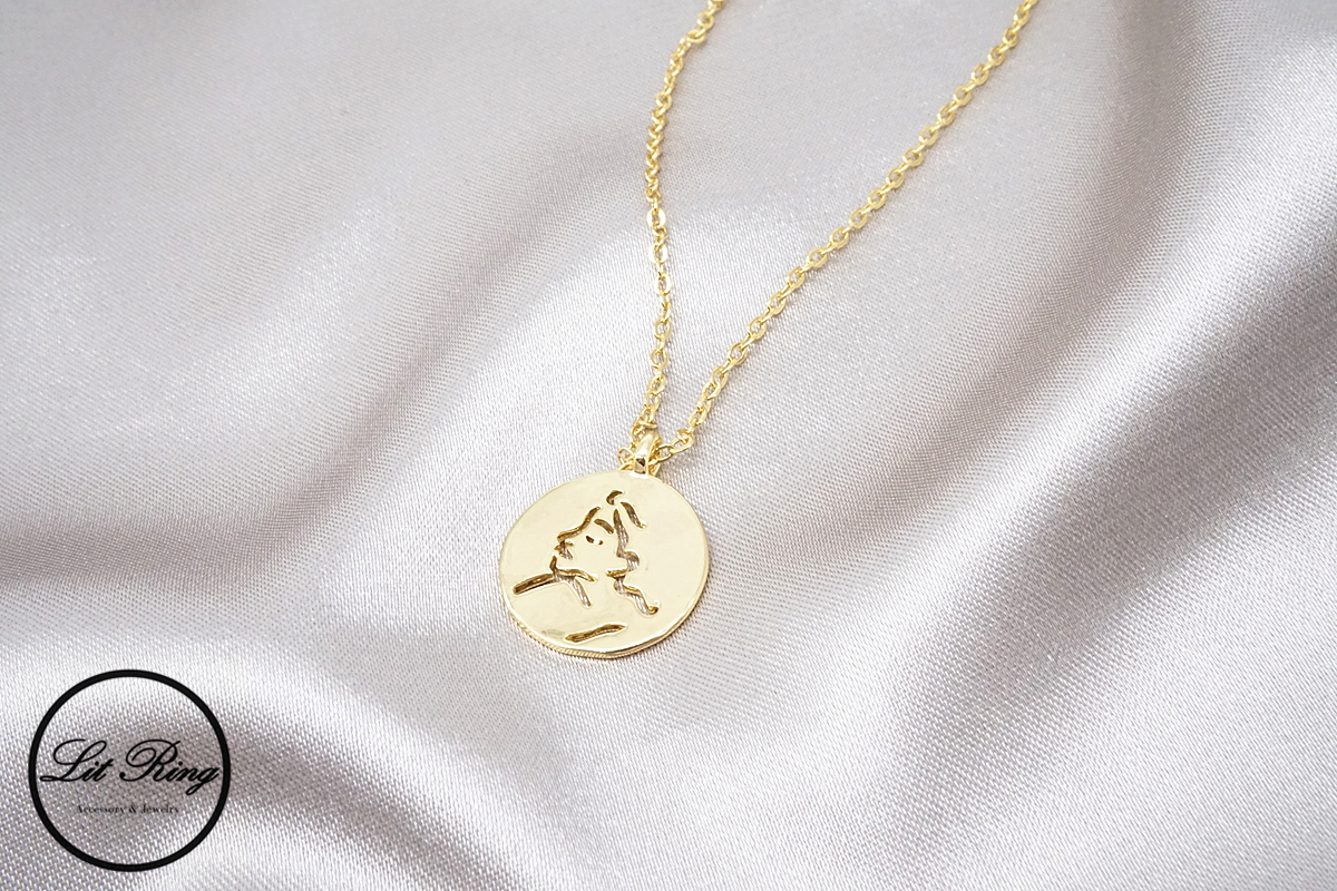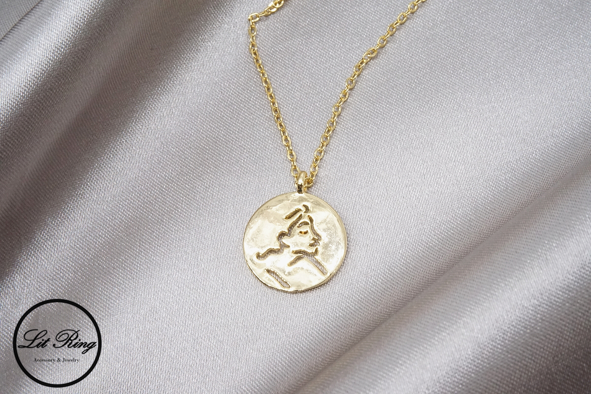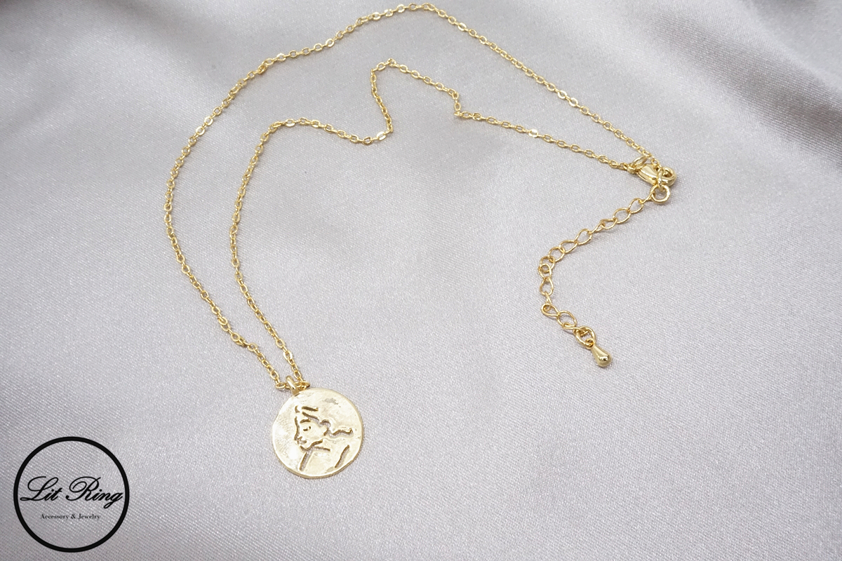 【Lit Ring】18k金銅鍍鏤空少女的畫像項鍊