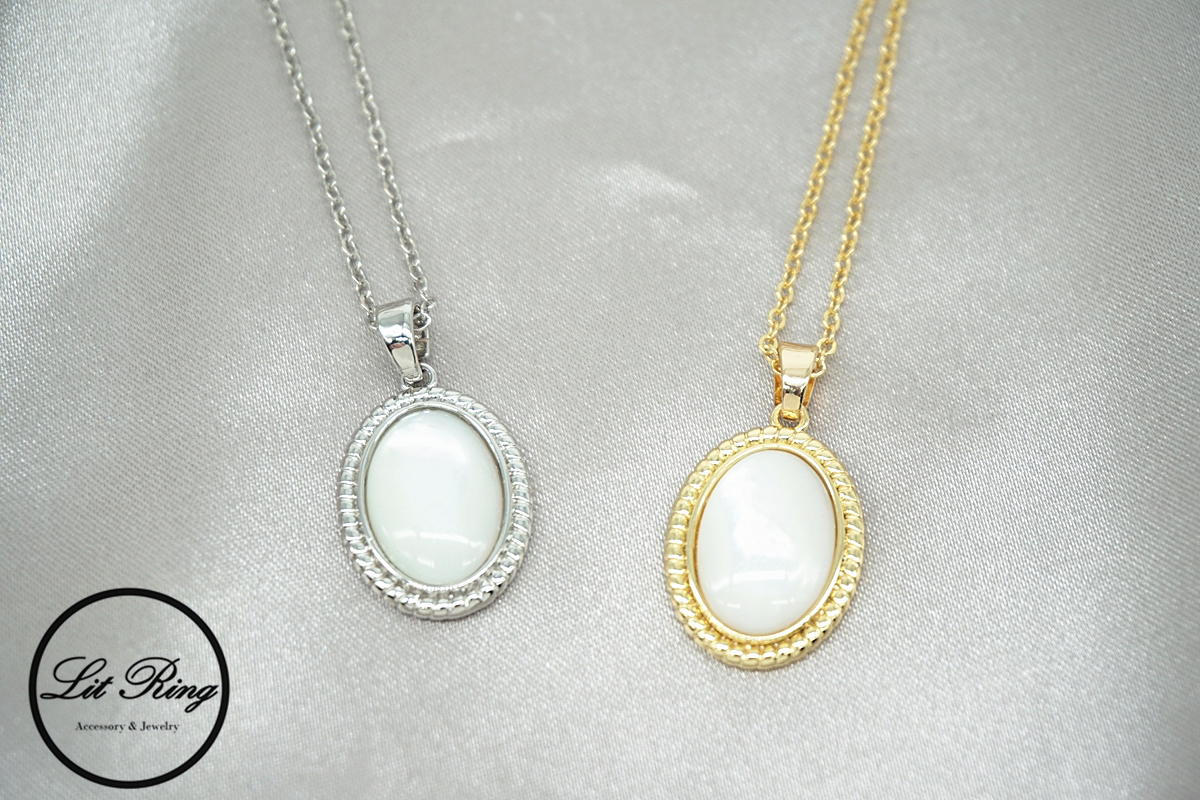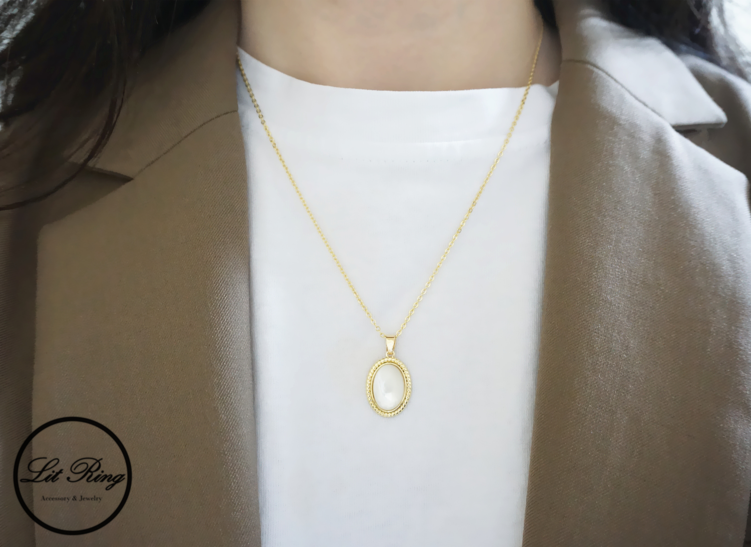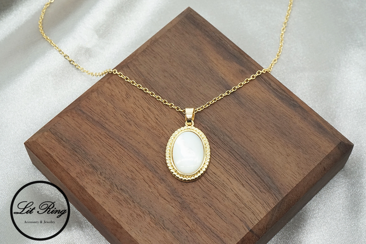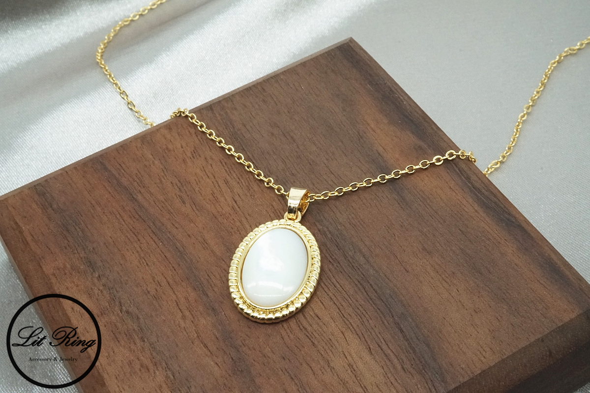 【Lit Ring】18k金銅鍍古典月光白墜子項鍊