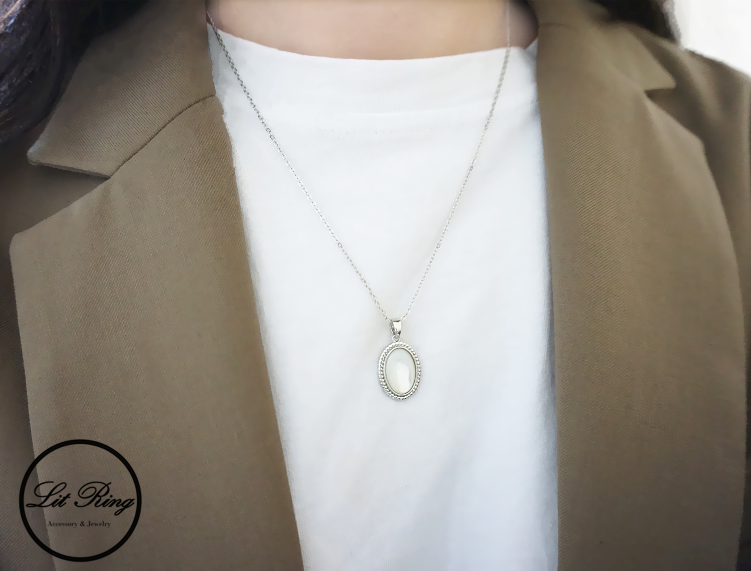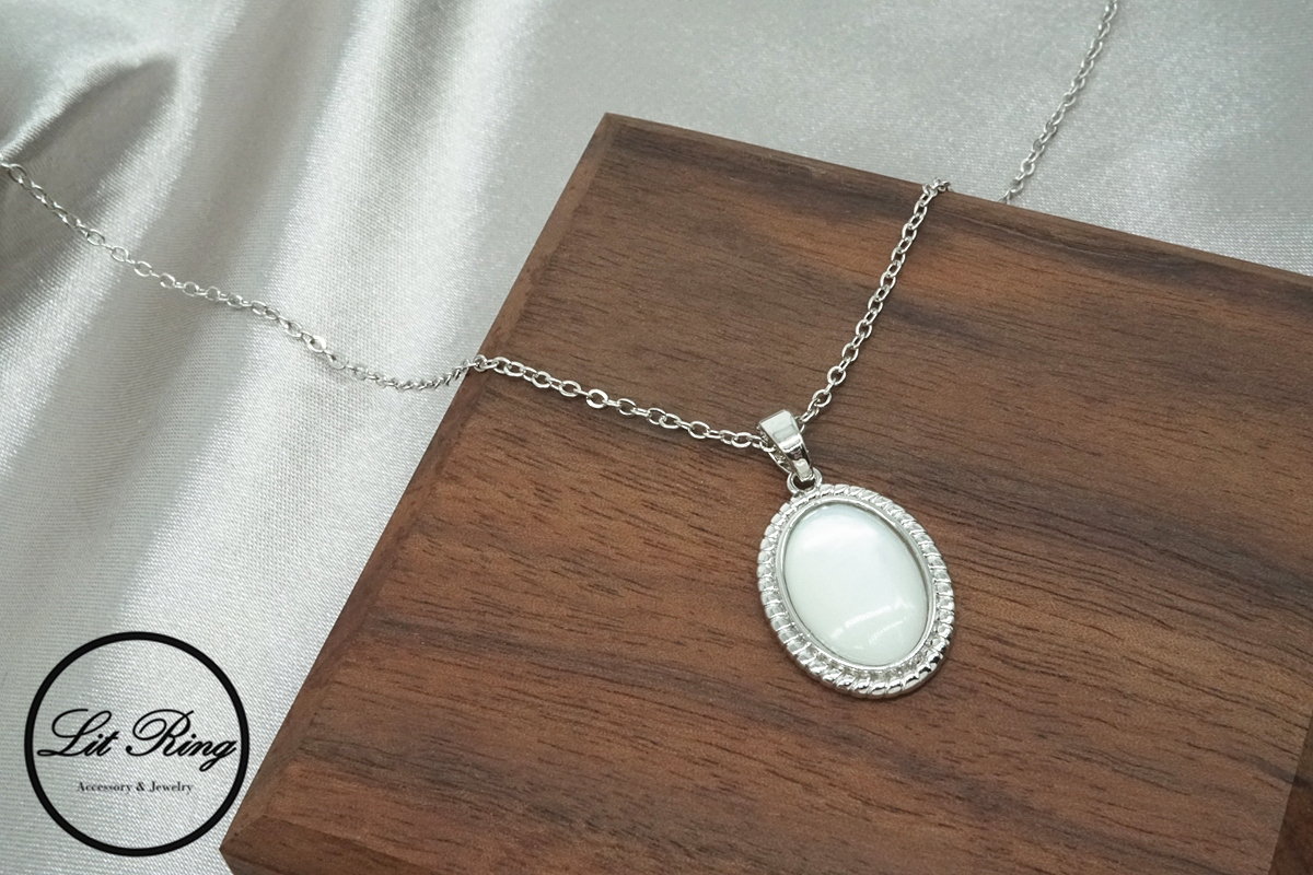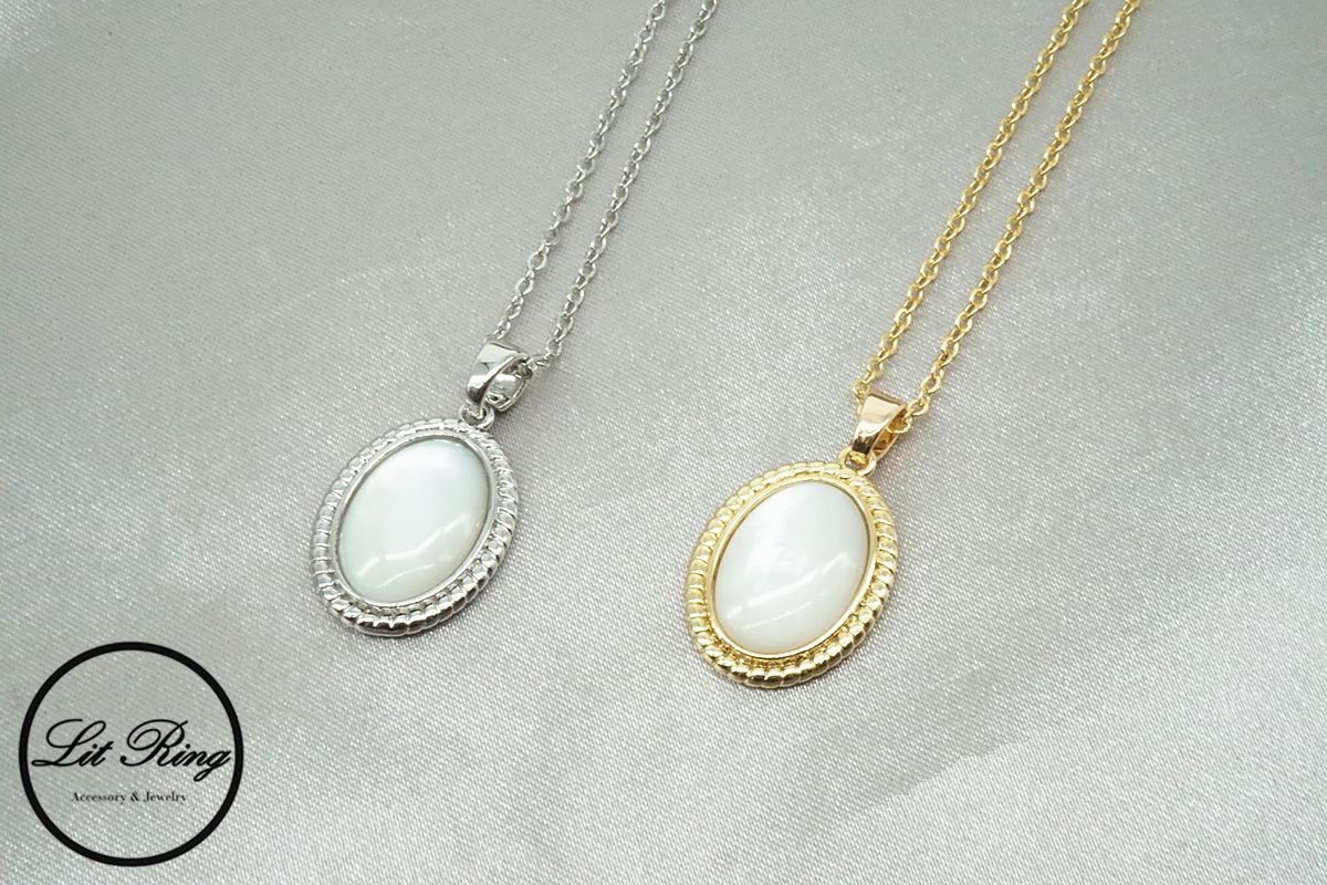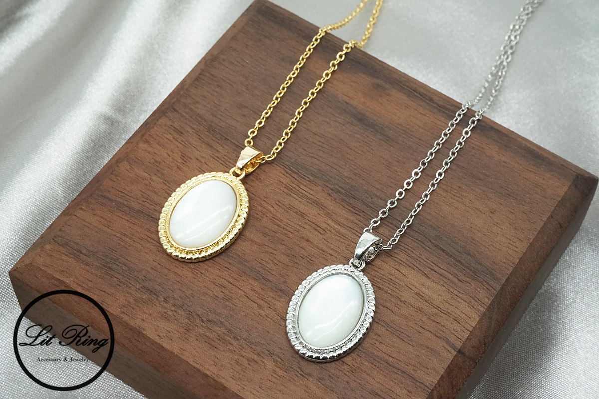 【Lit Ring】18k金銅鍍古典月光白墜子項鍊