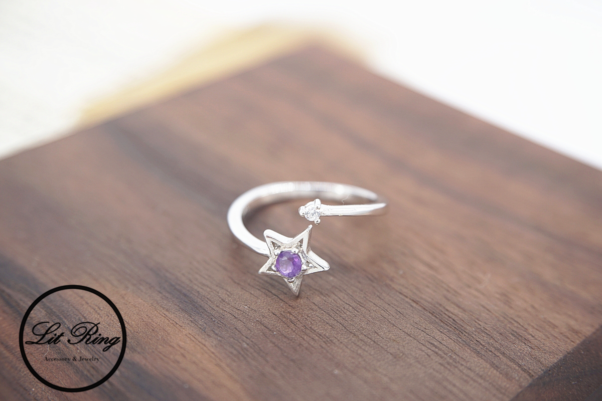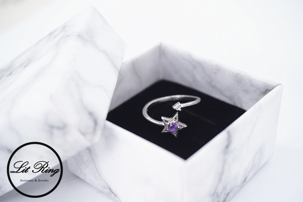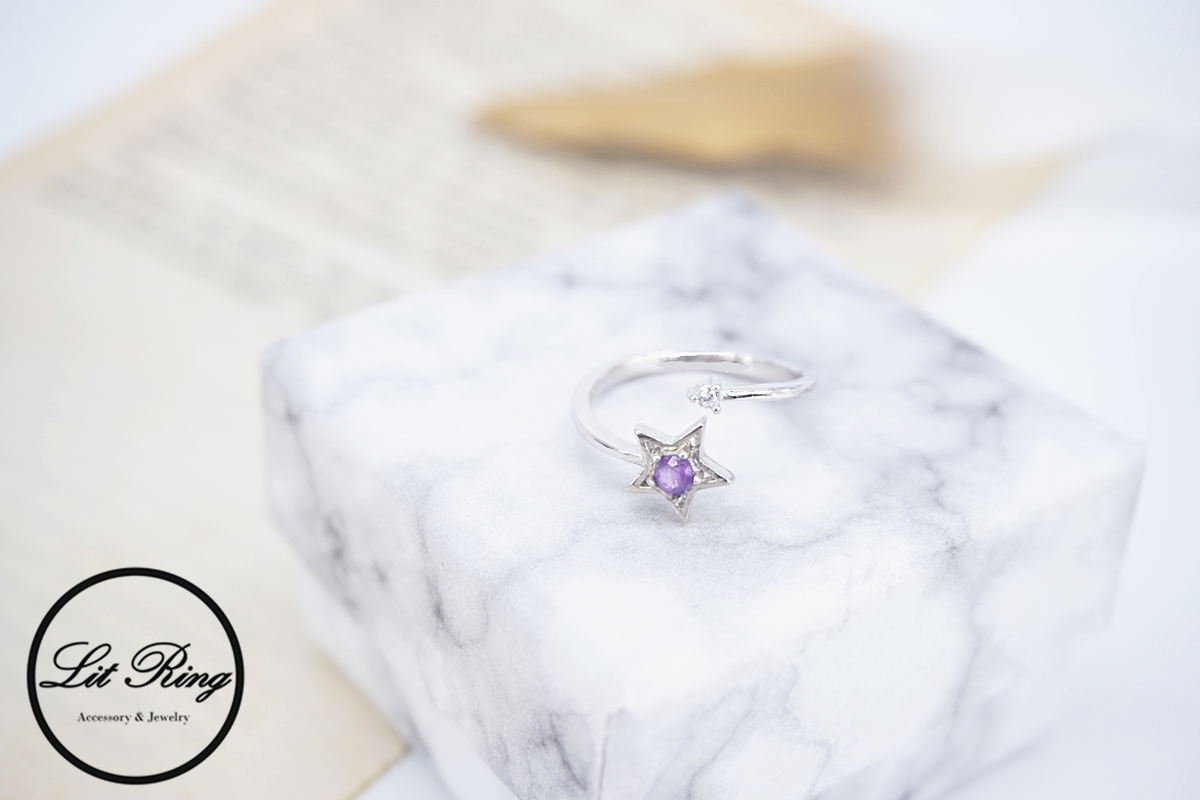 Lit Ring訂製純銀星星紫水晶戒指