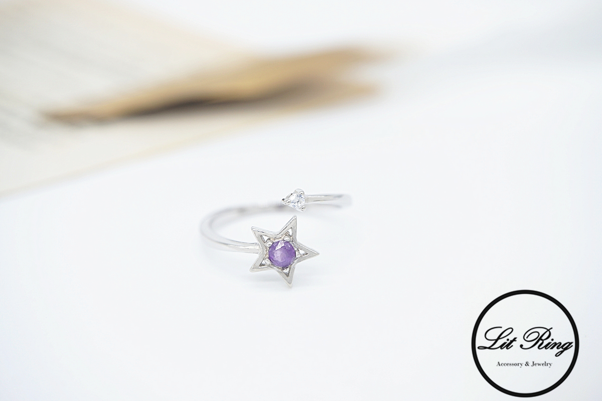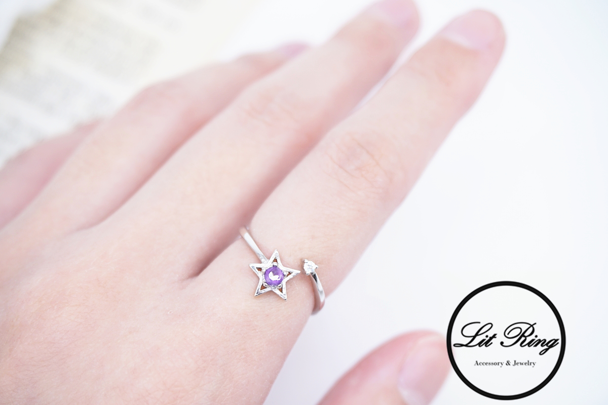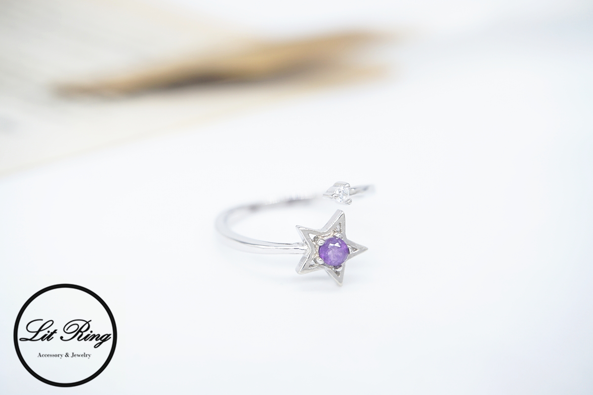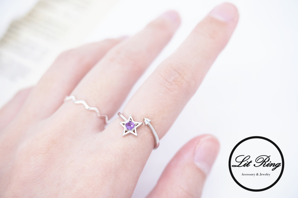 Lit Ring訂製純銀星星紫水晶戒指