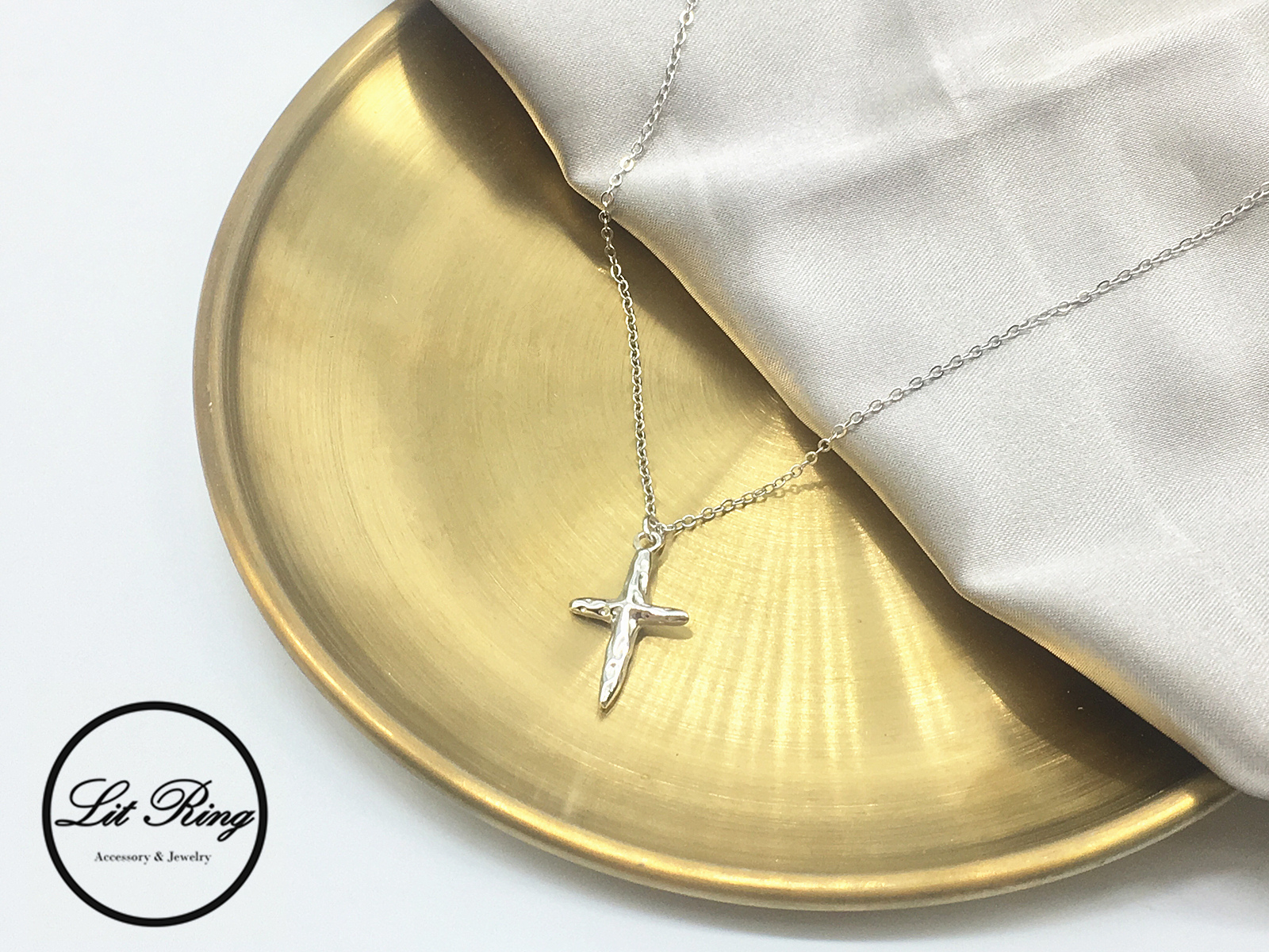 小巧的十字墜飾,帶有敲打風不規則凹凸紋路