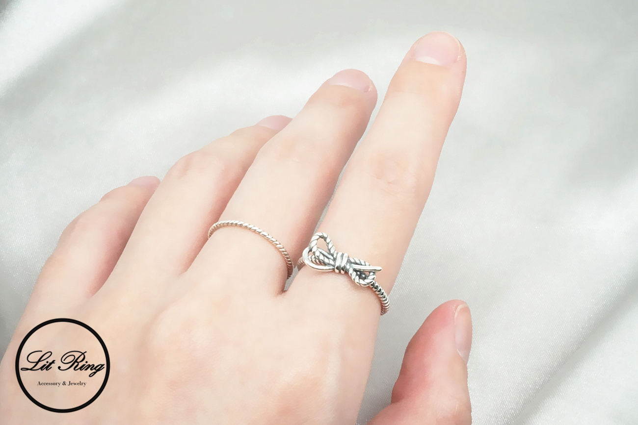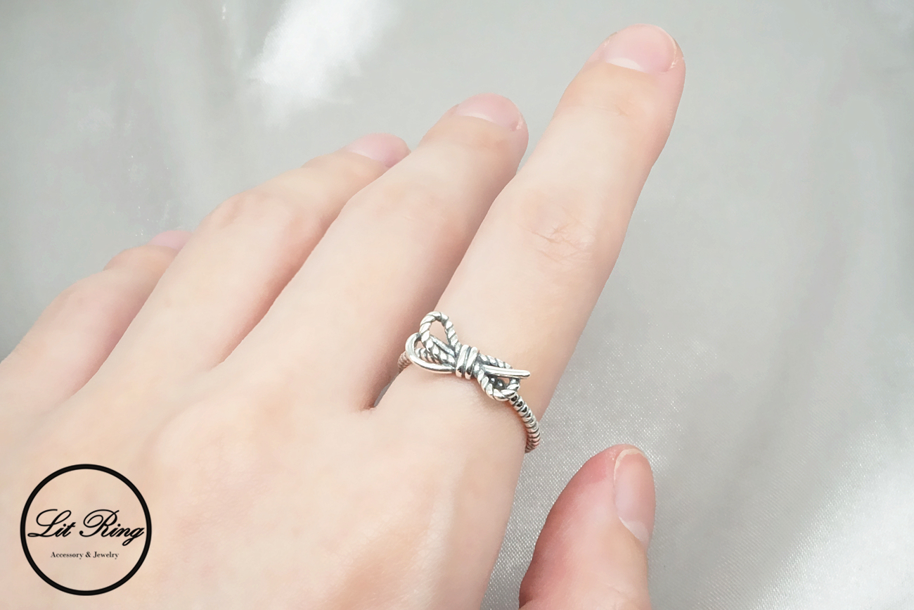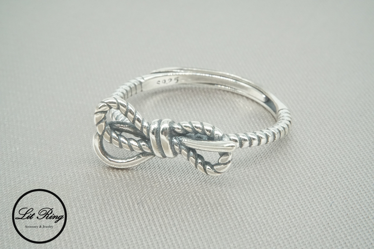 【Lit Ring】純銀復古麻花蝴蝶結戒指
