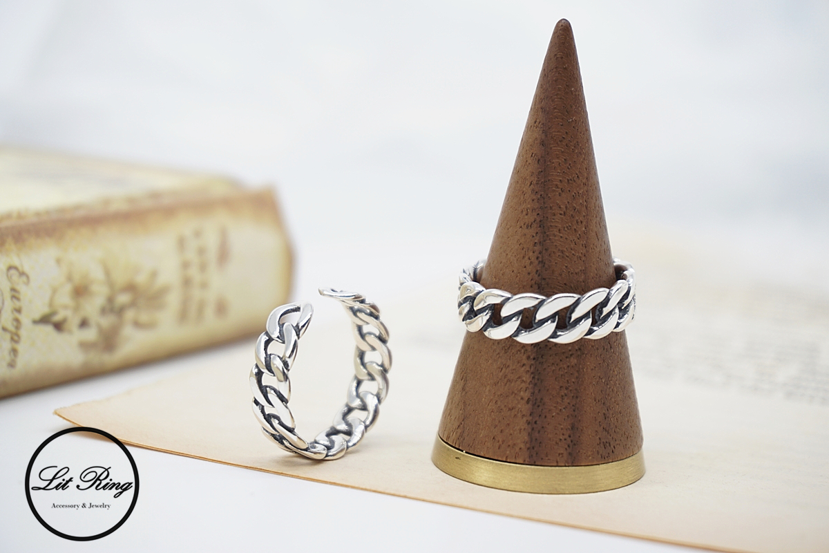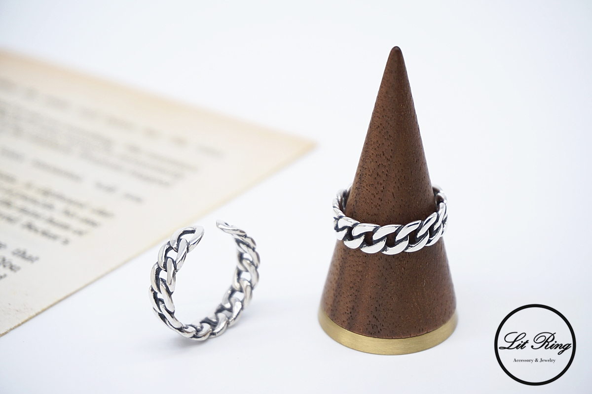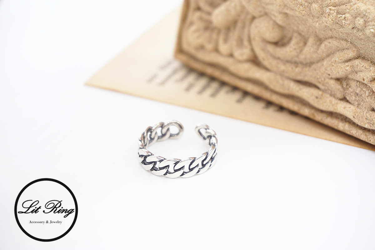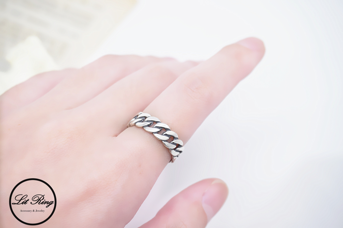 【Lit Ring】純銀復古小寬版鎖鏈戒指
