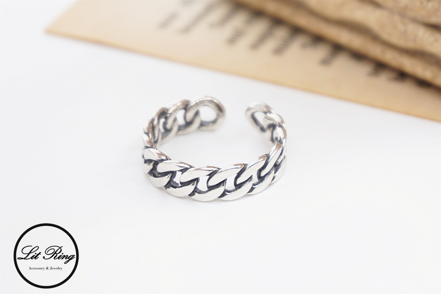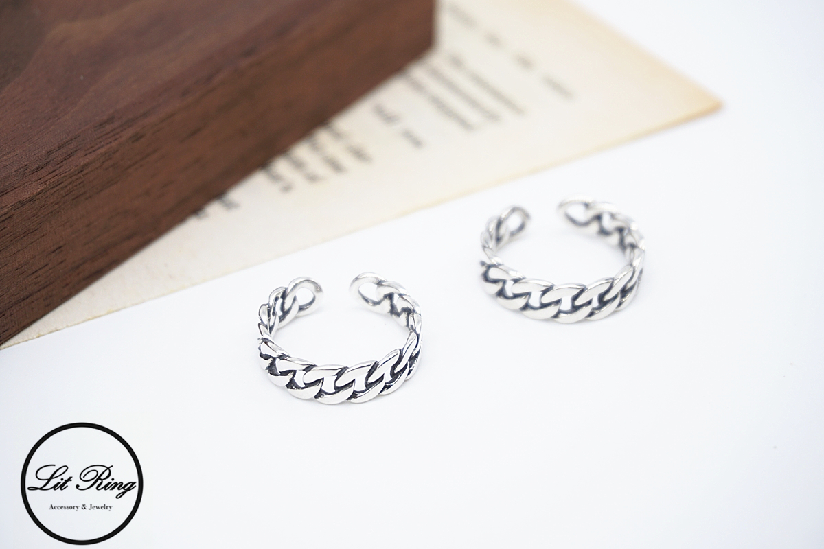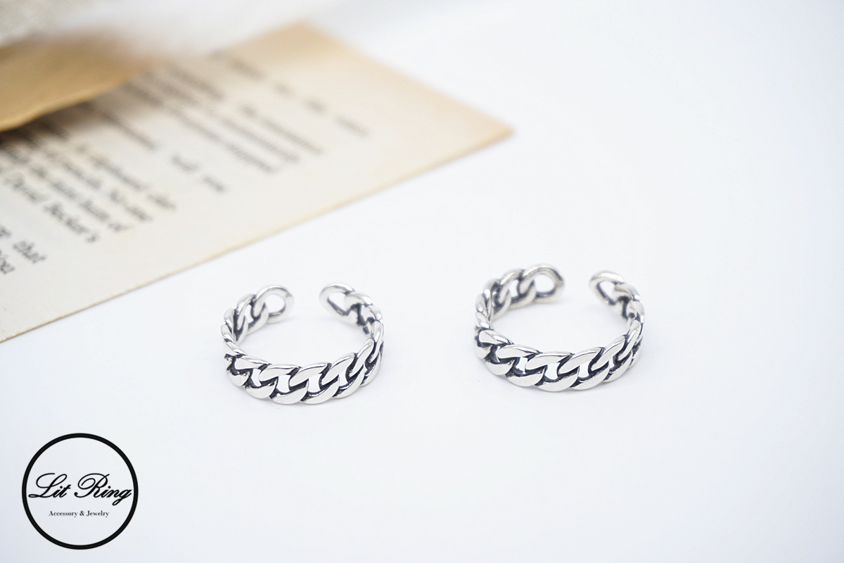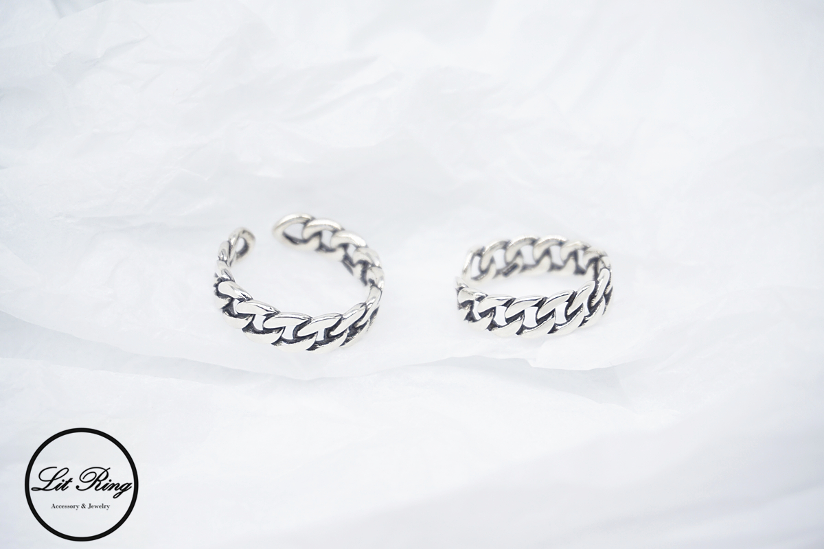 【Lit Ring】純銀復古小寬版鎖鏈戒指