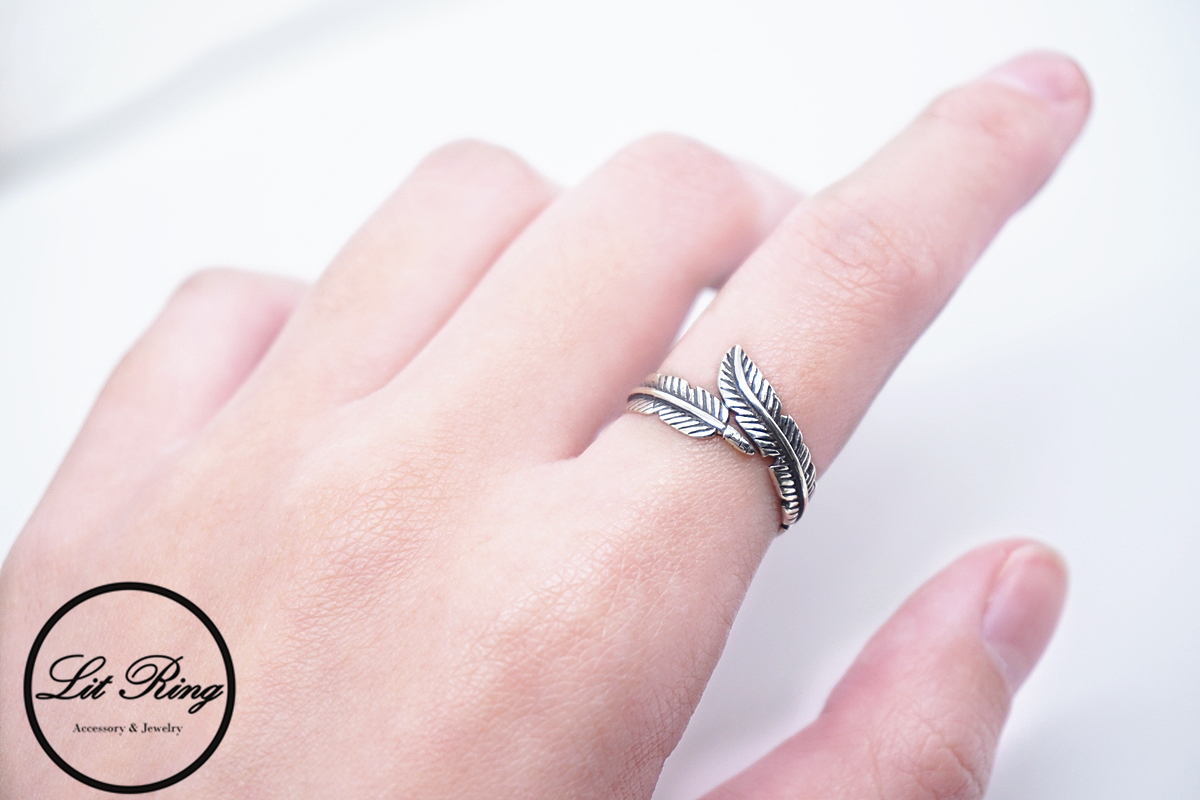 好看的羽毛戒指就要像這一款,自然微彎的姿態,