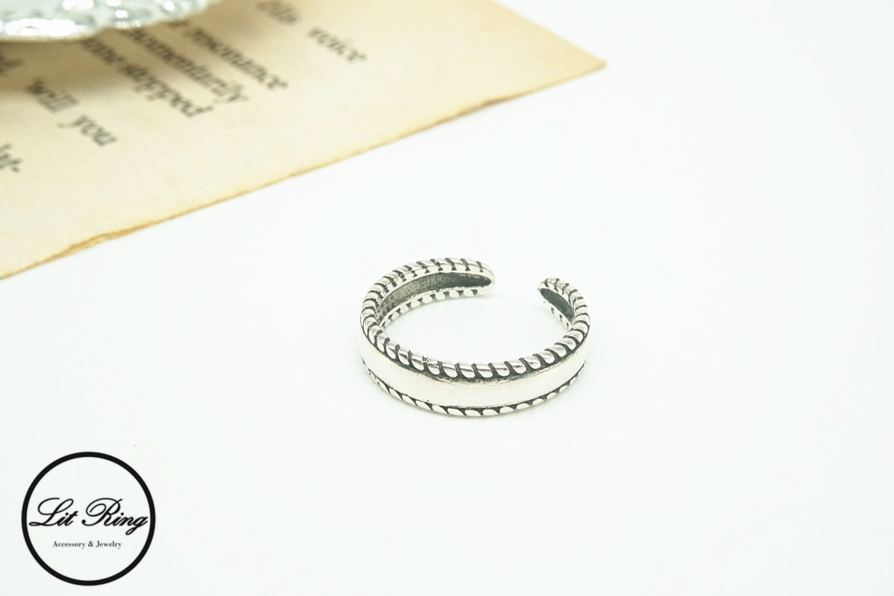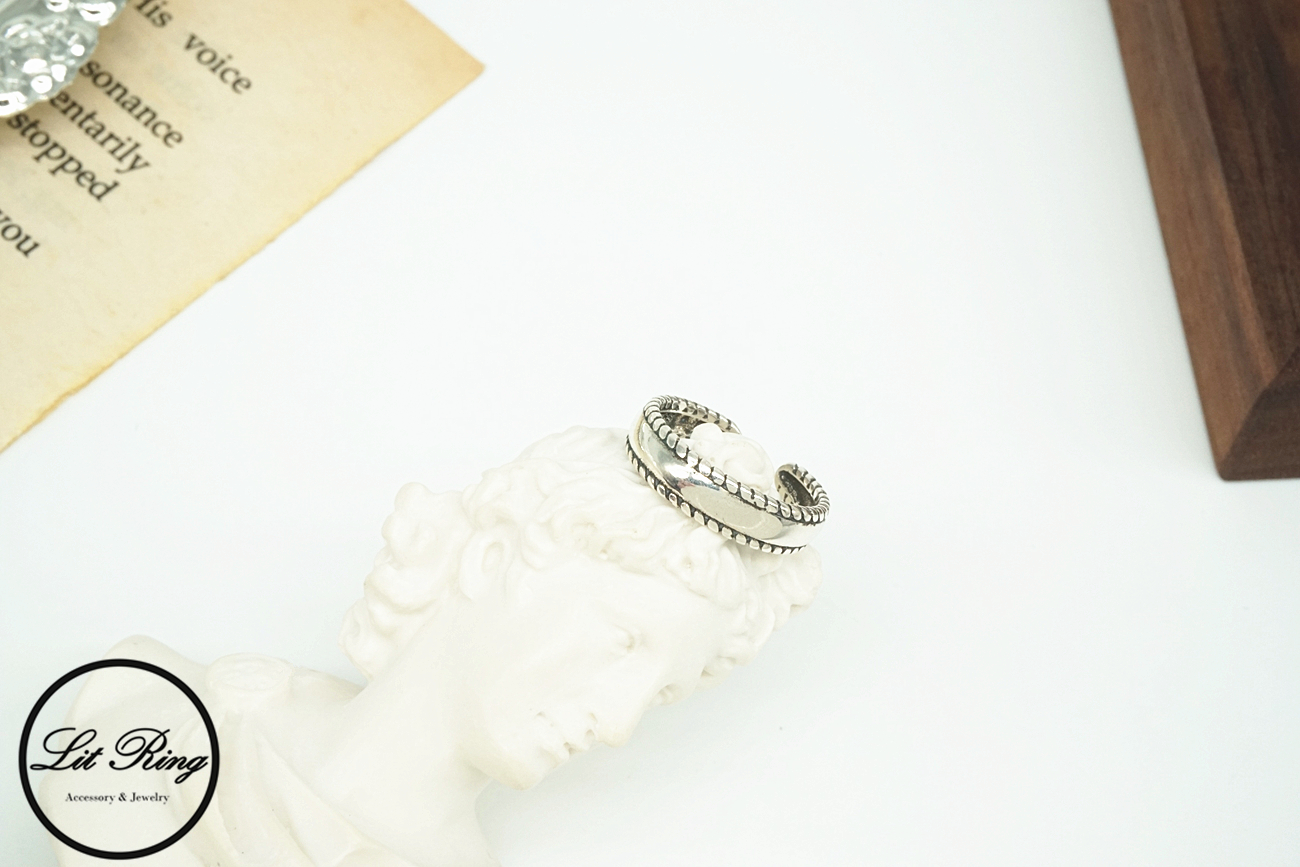 【Lit Ring】純銀復古刻花滾邊尾戒