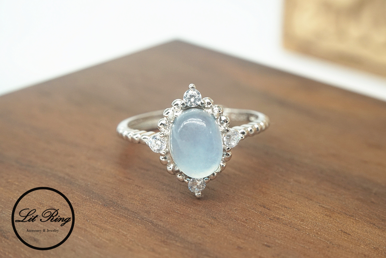 925純銀鑲嵌天然海藍寶,清新沉靜的淡藍色,