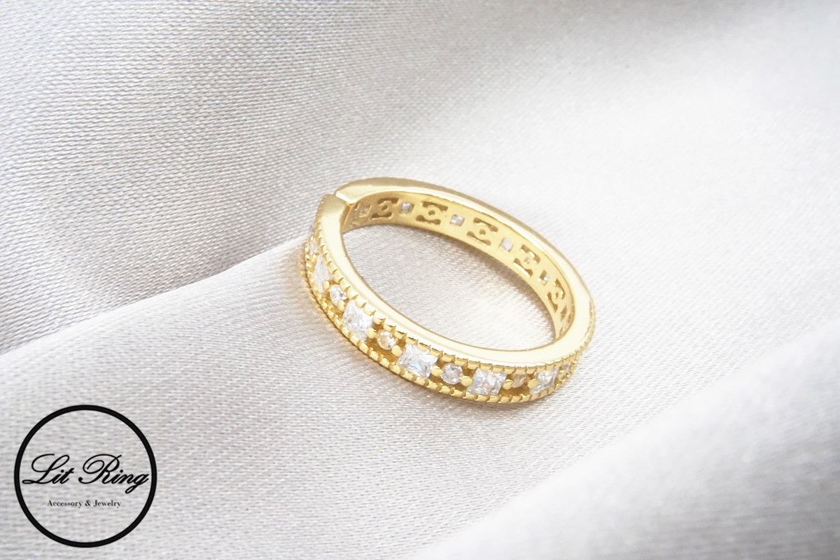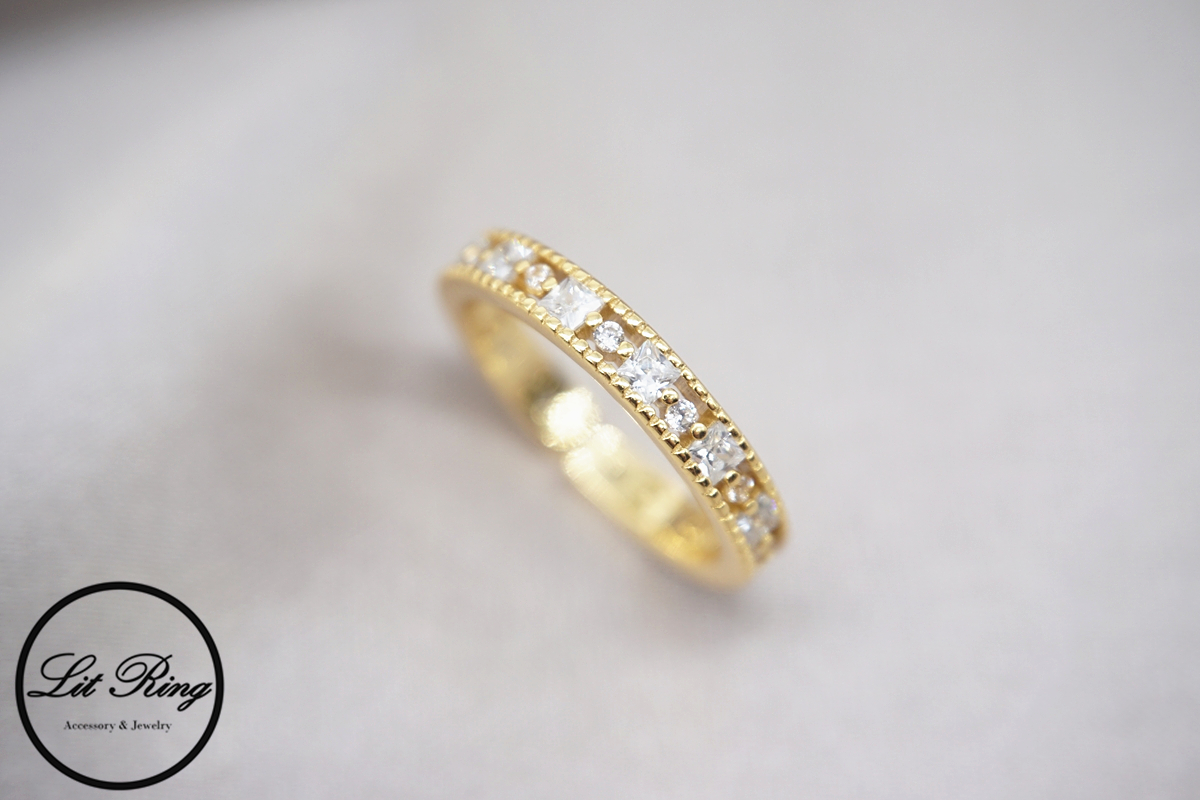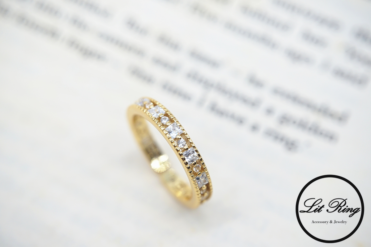 雙層古典風刻花滾邊,中間鑲嵌方形、圓形鋯石,