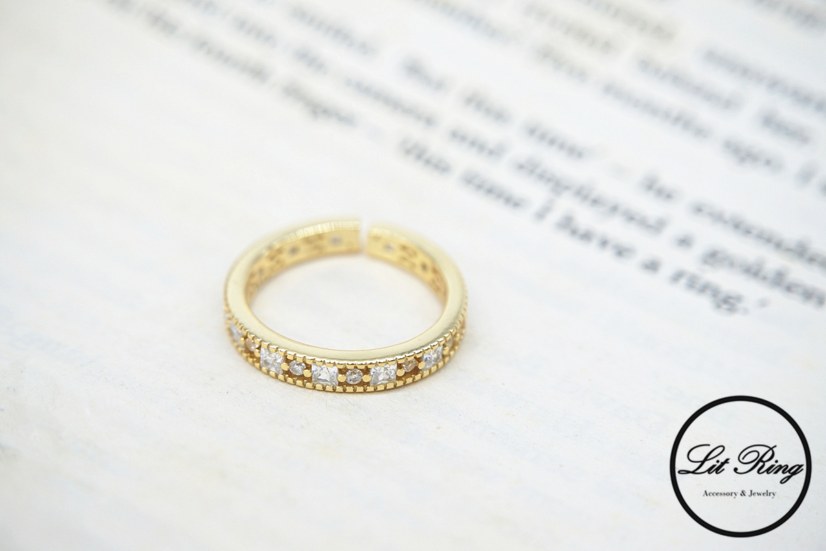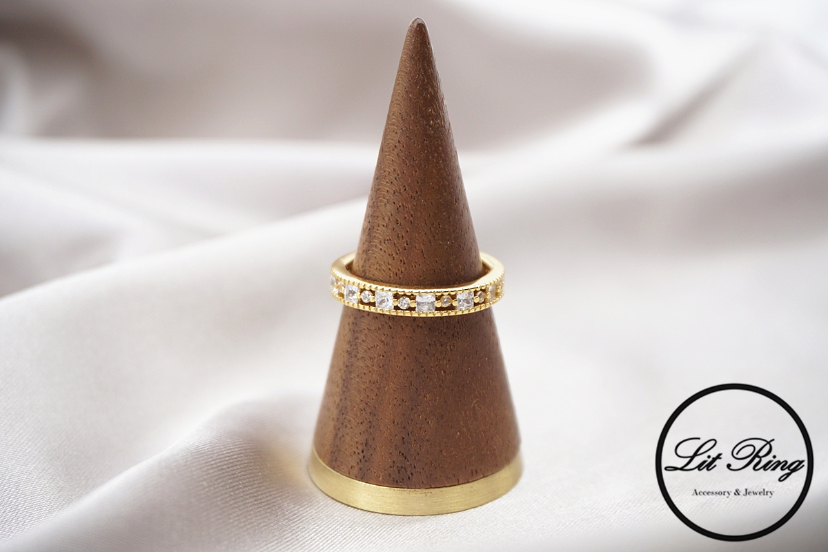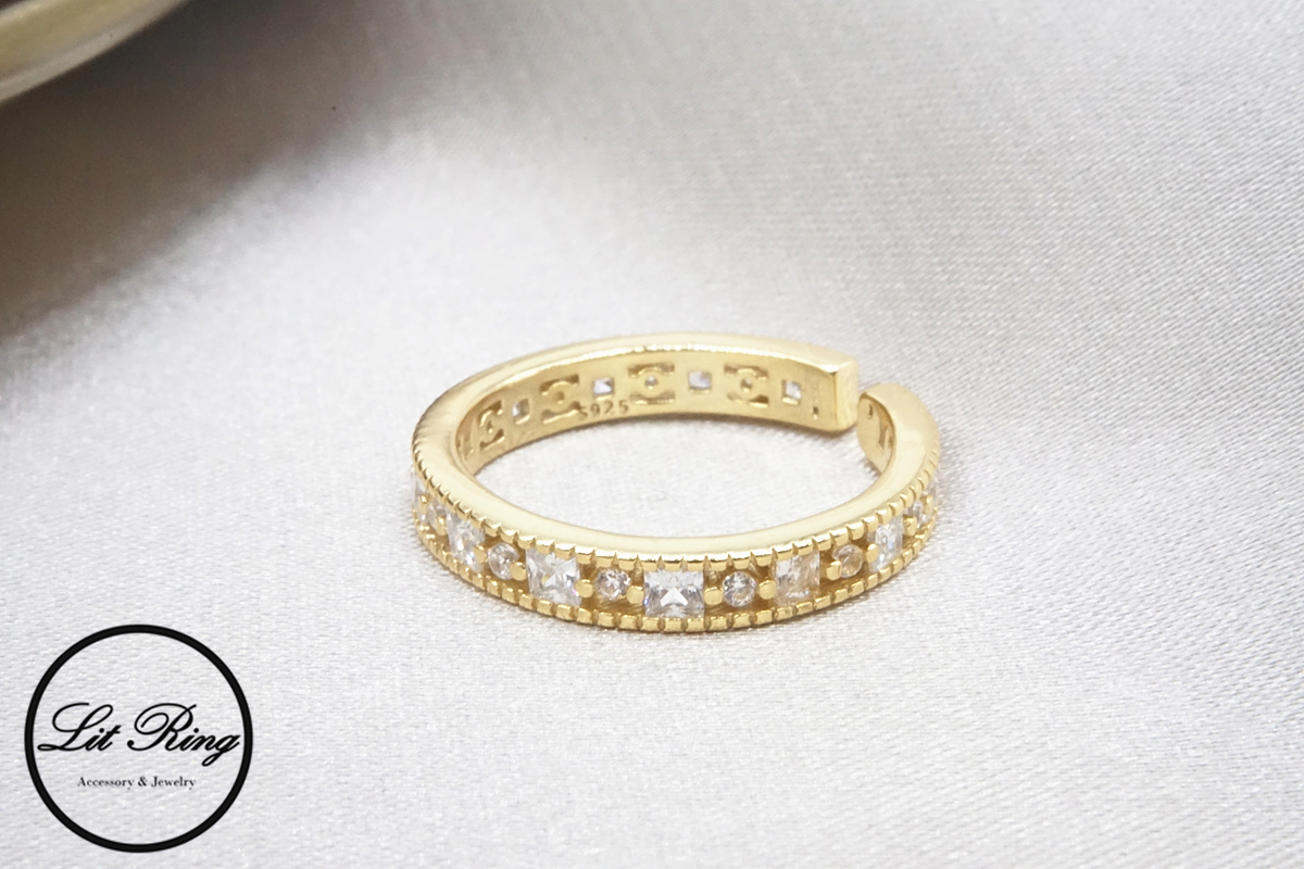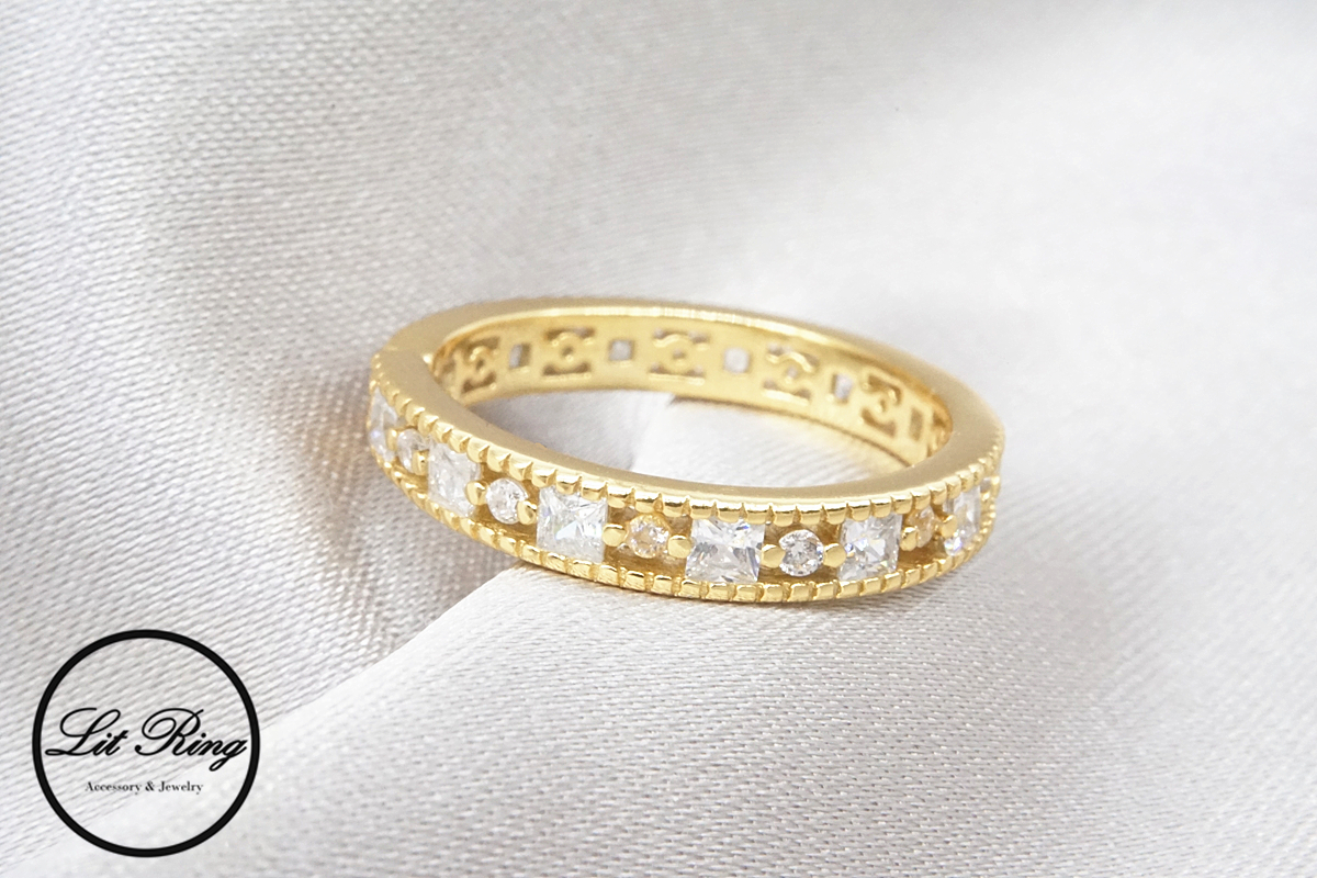 雙層古典風刻花滾邊,中間鑲嵌方形、圓形鋯石,