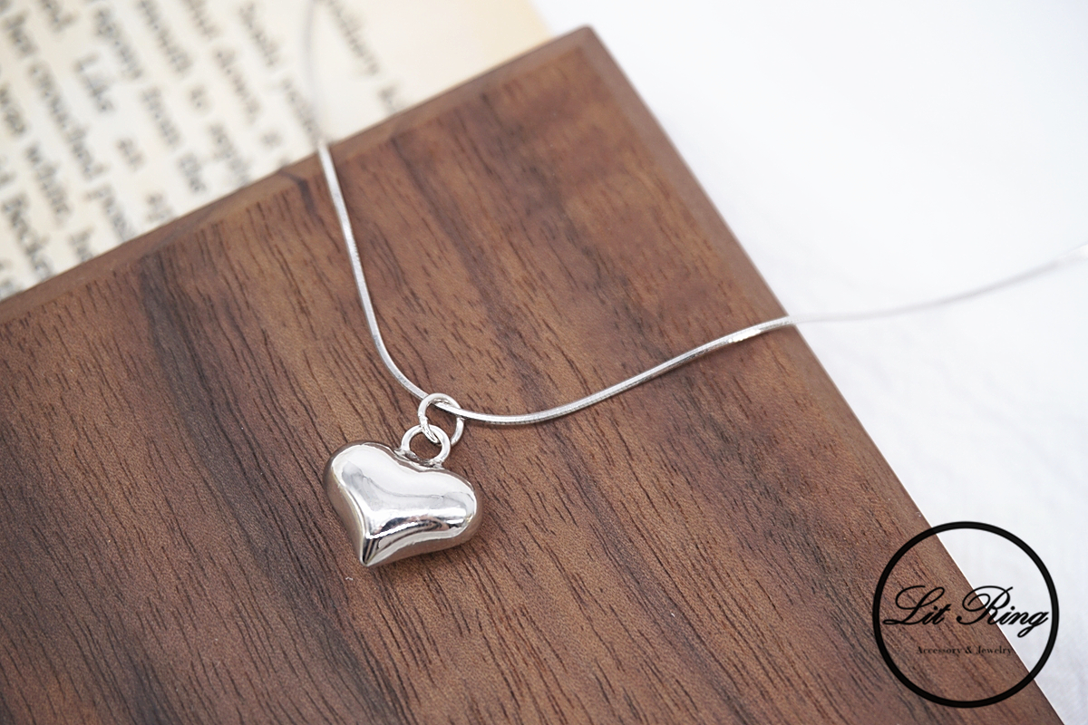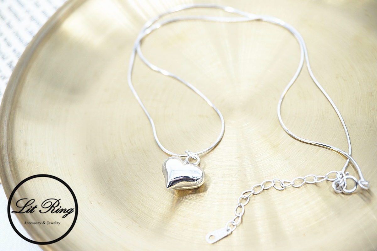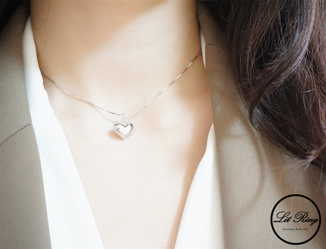 以光滑柔軟的鍊條,搭配鏡面拋光的純銀愛心,