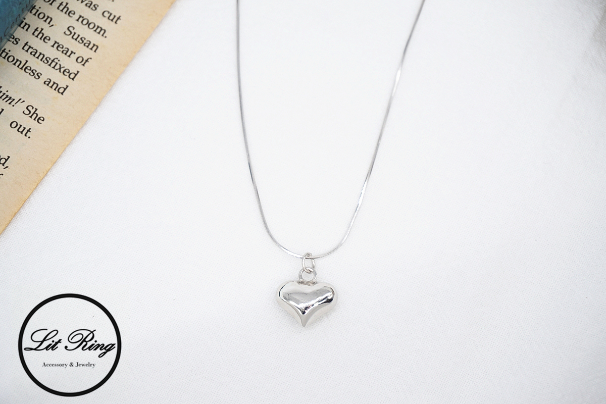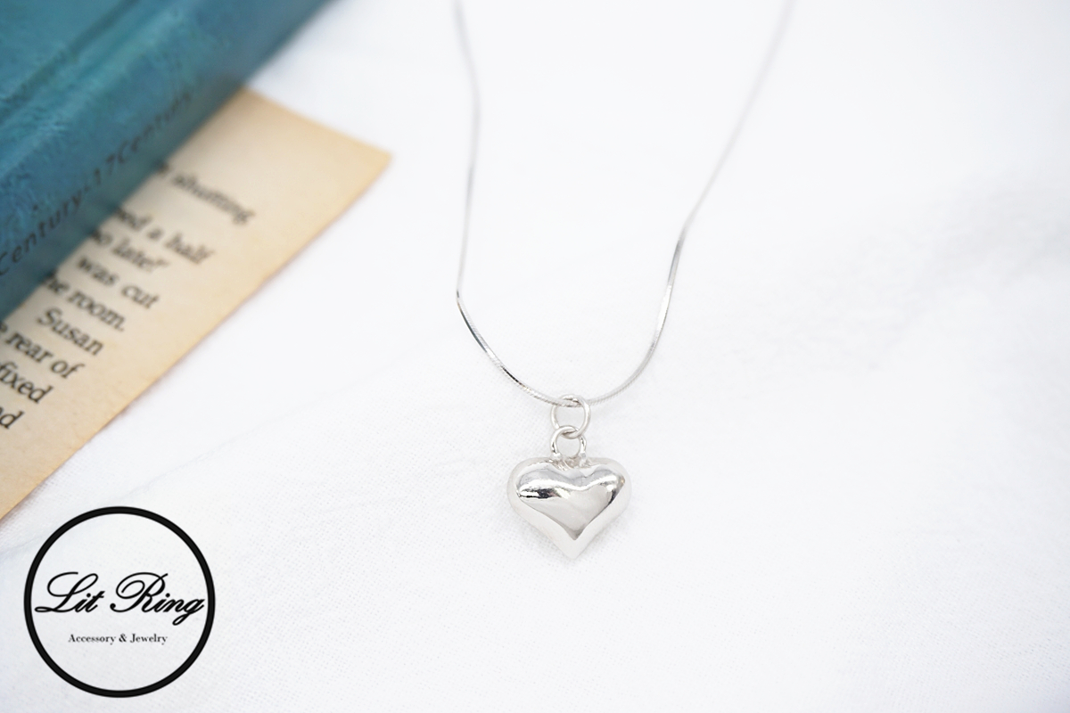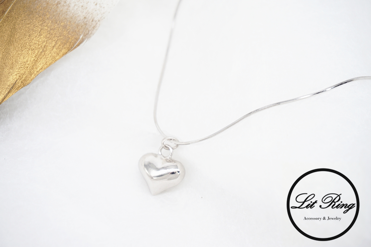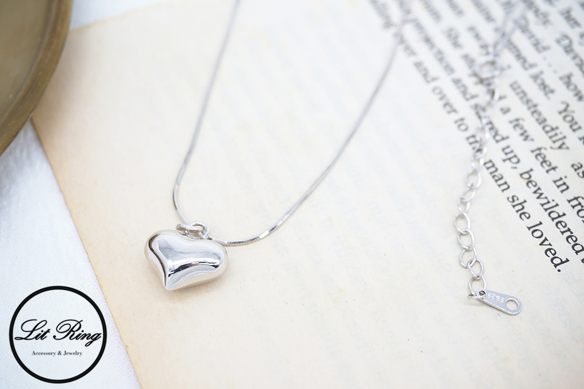 以光滑柔軟的鍊條,搭配鏡面拋光的純銀愛心,