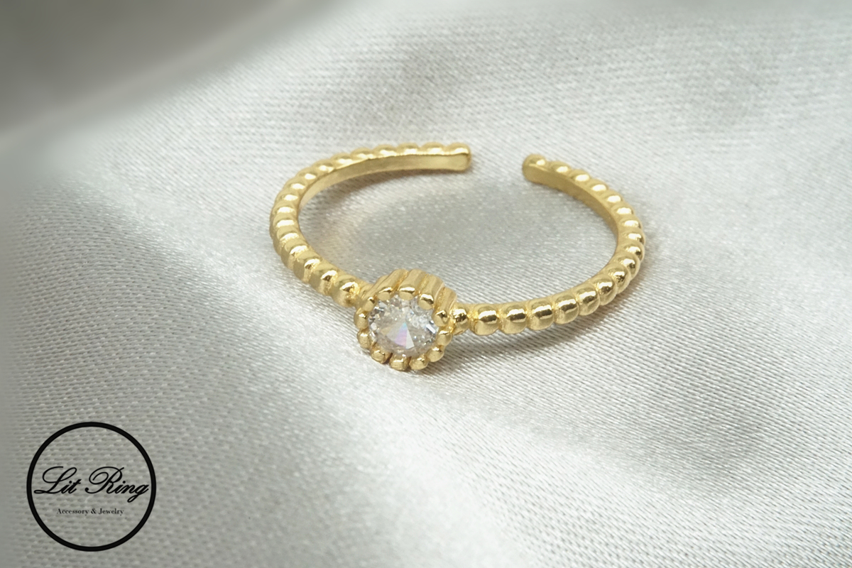 【Lit Ring】純銀微甜麻花滾邊鋯石戒指