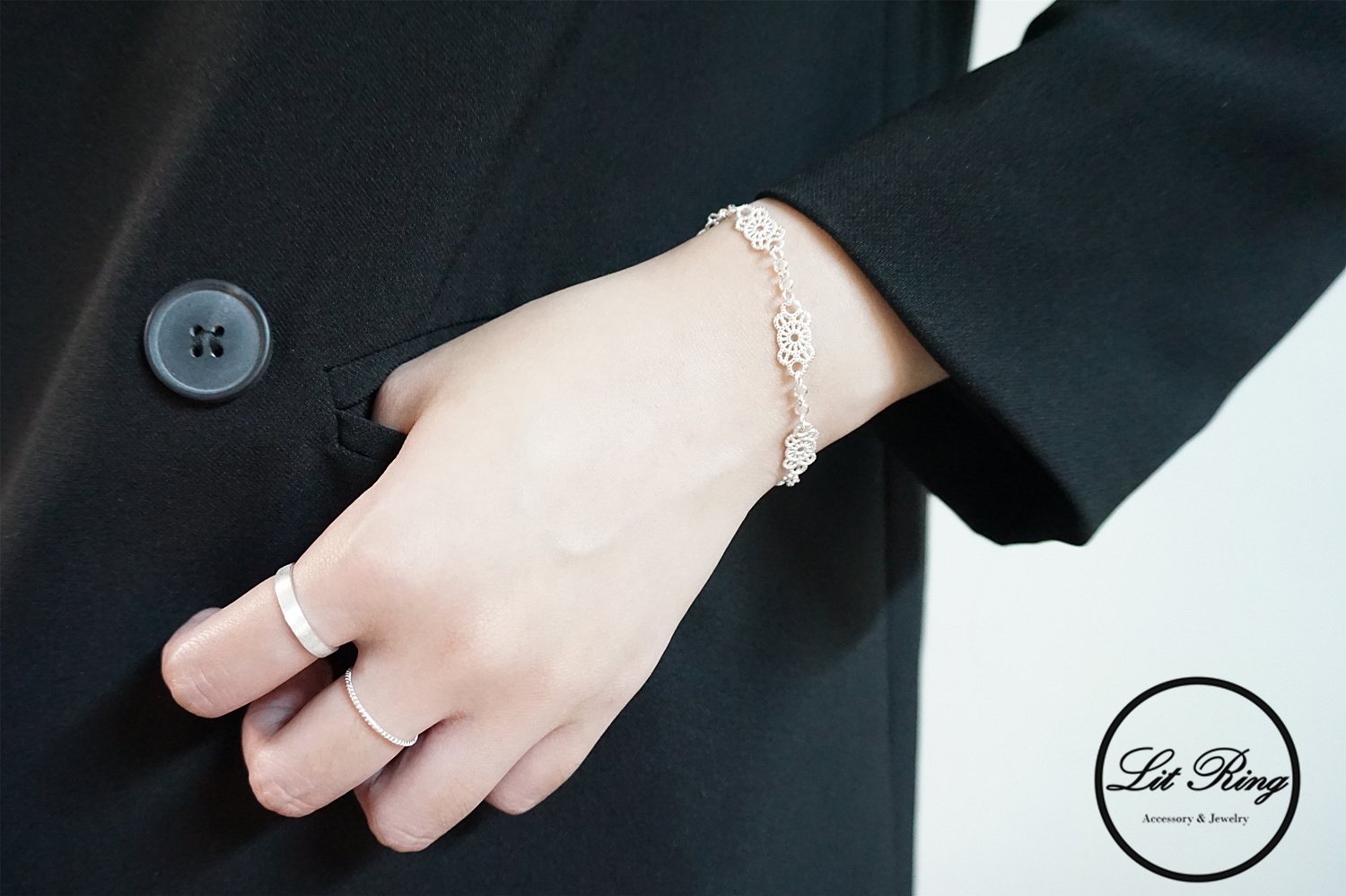 【Lit Ring】純銀絕美銀白蕾絲手鍊