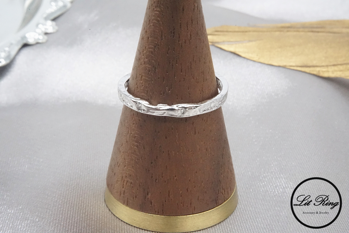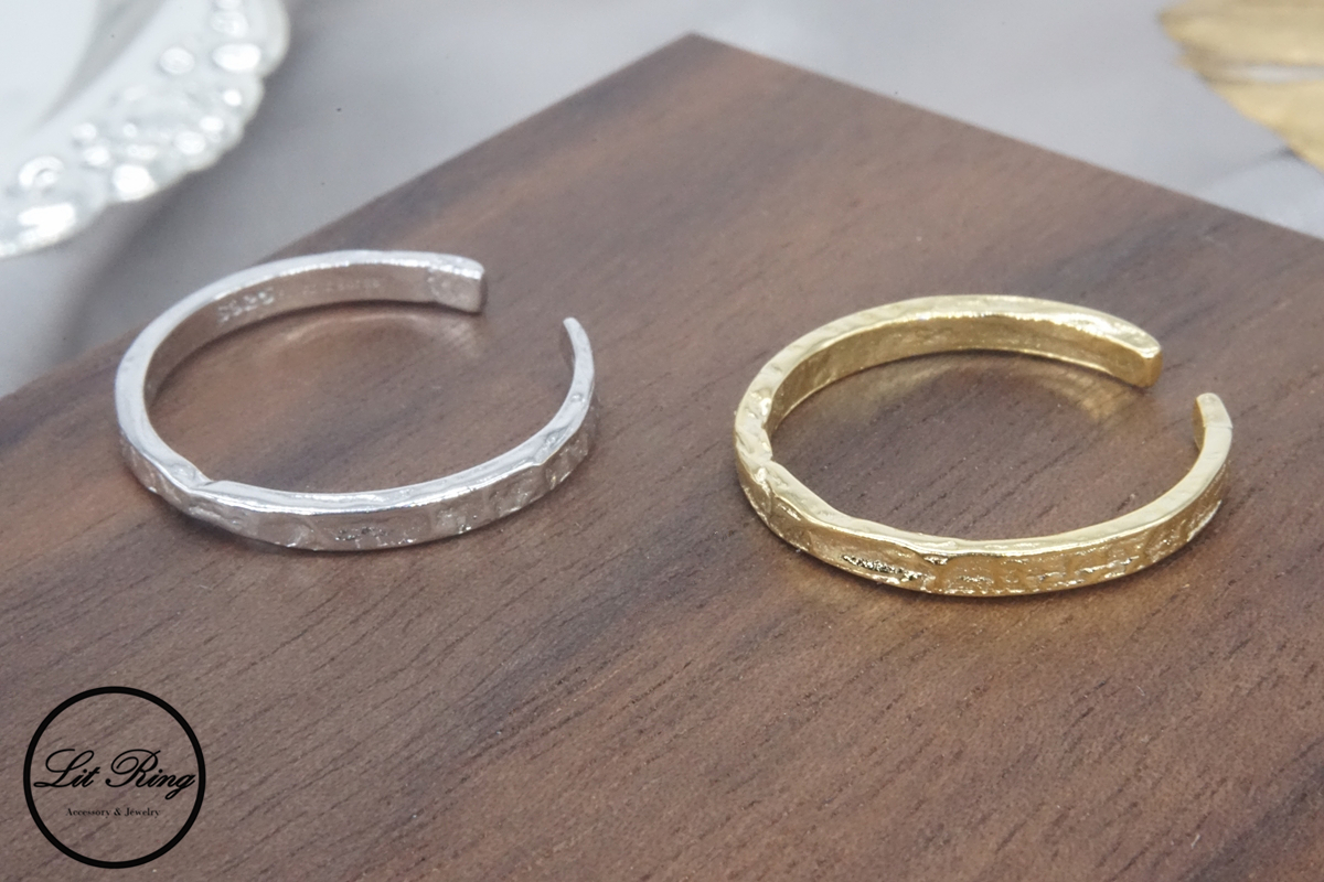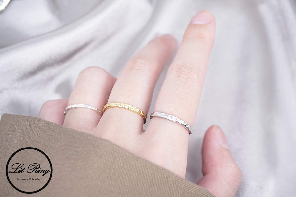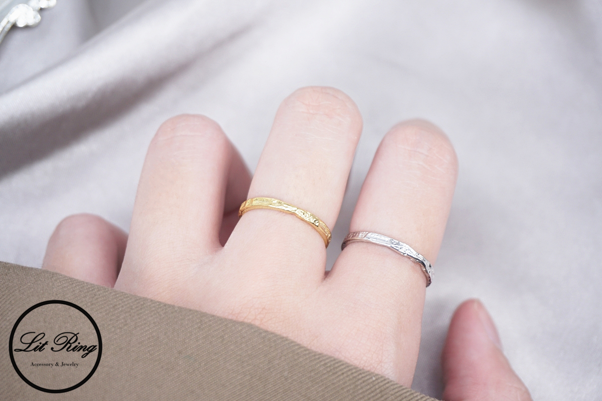 跟我們家另一款純銀敲打風刻紋細戒指 比起來,