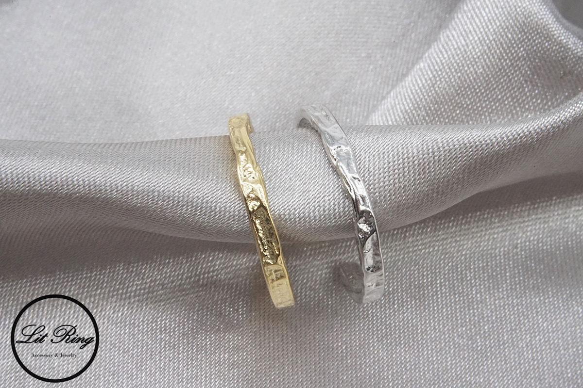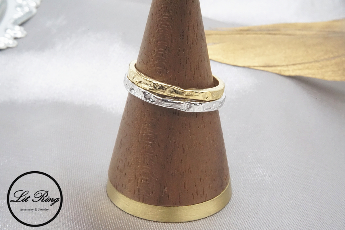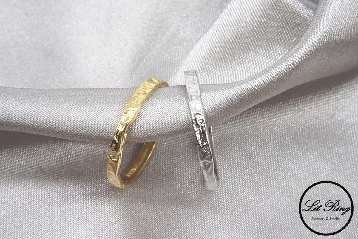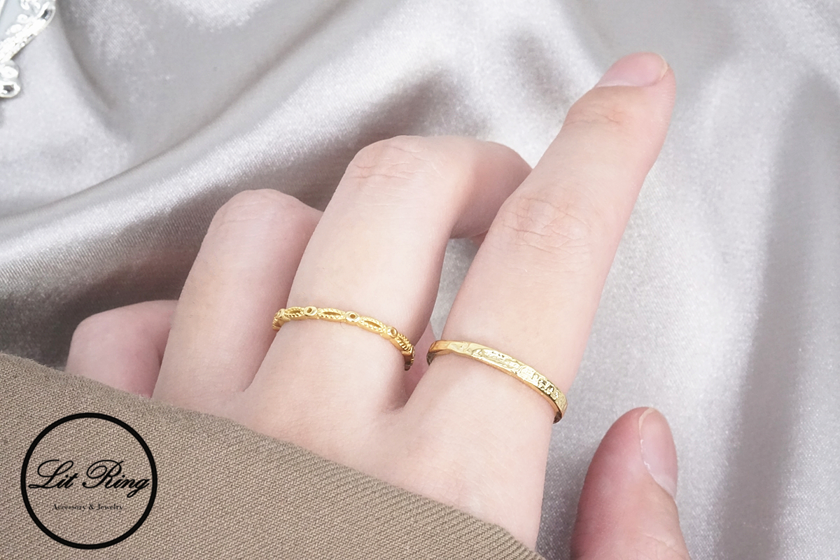 跟我們家另一款純銀敲打風刻紋細戒指 比起來,