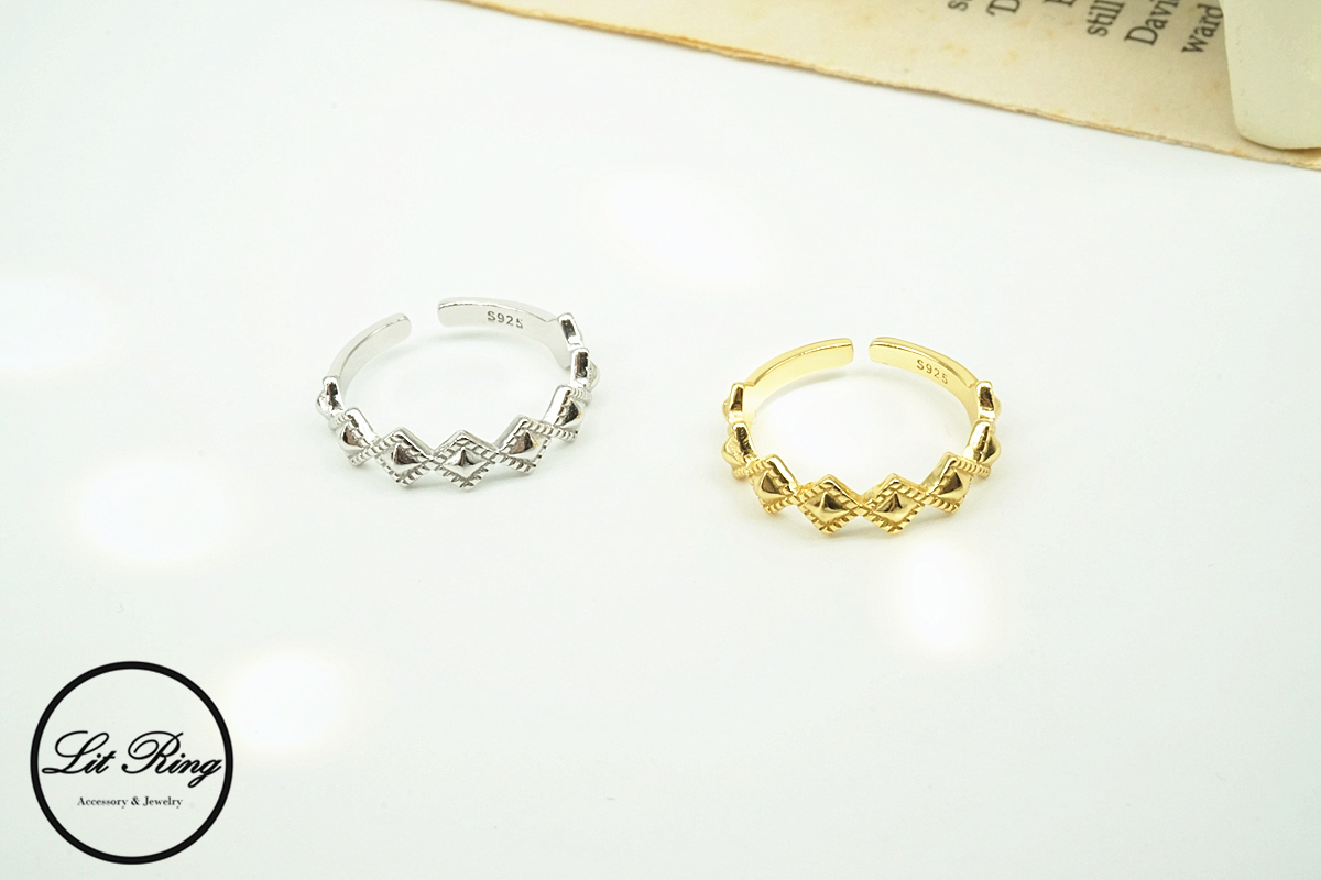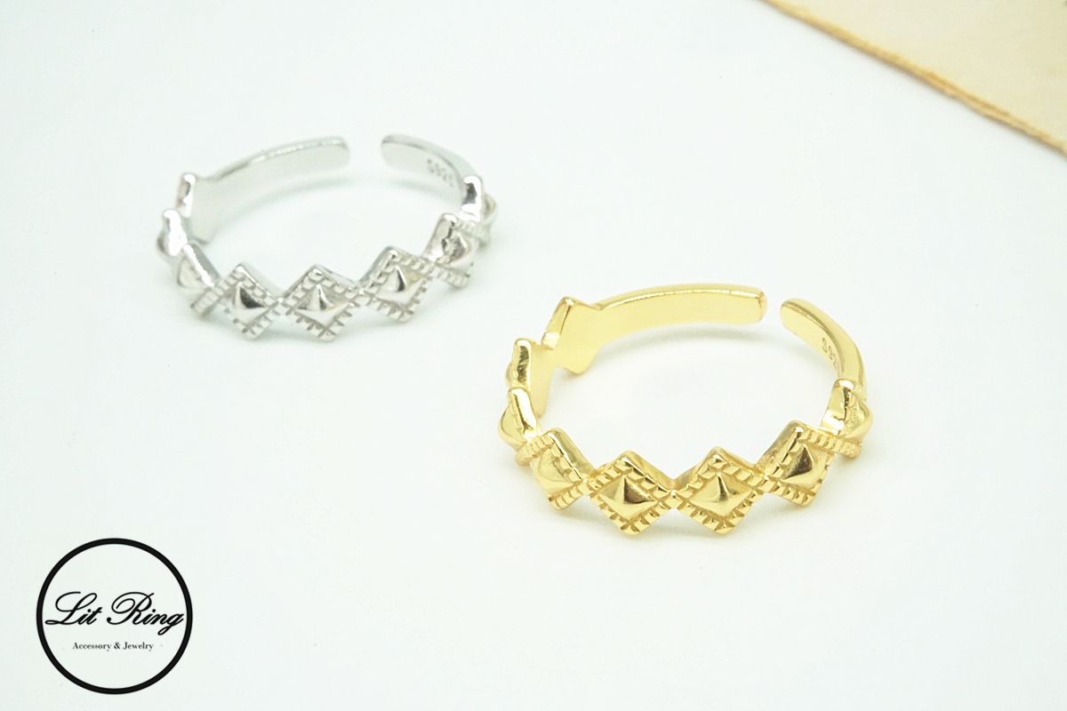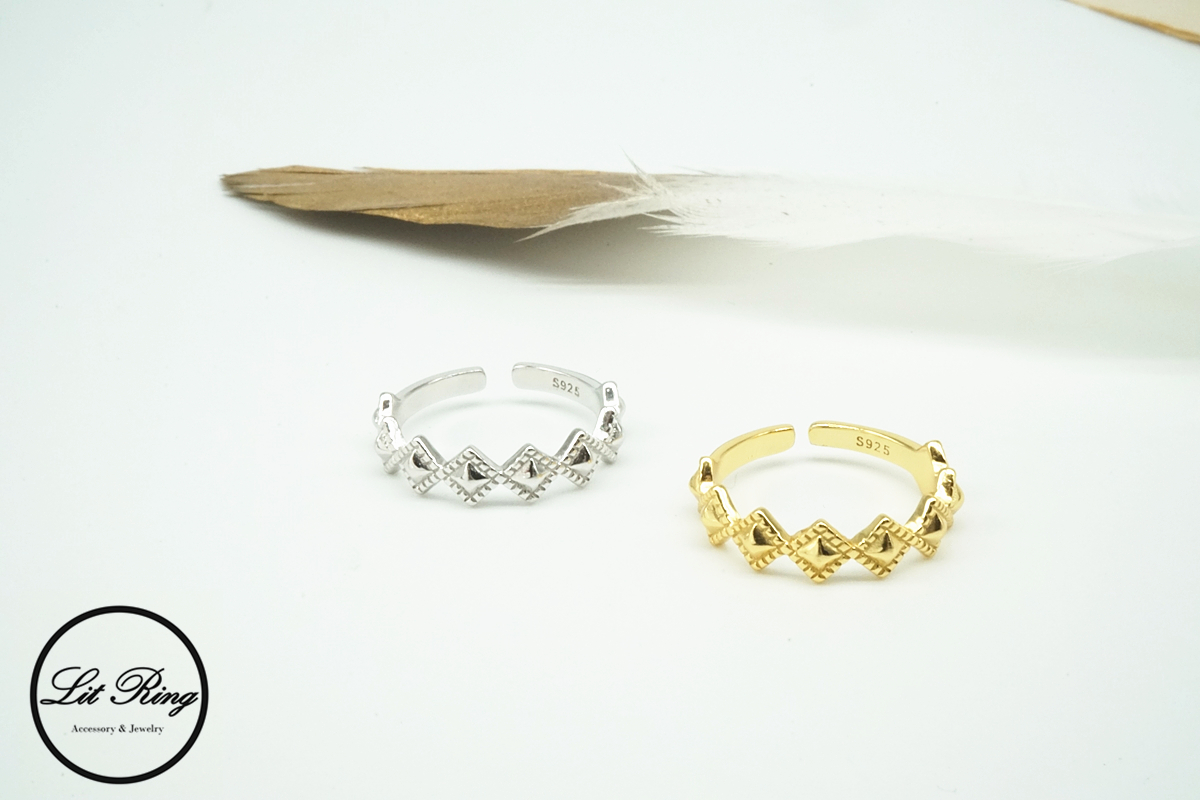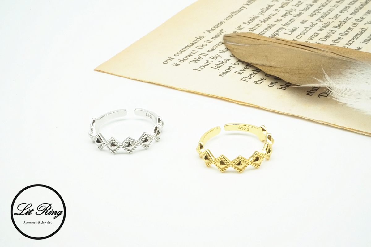 【Lit Ring】純銀古典菱形刻花戒指