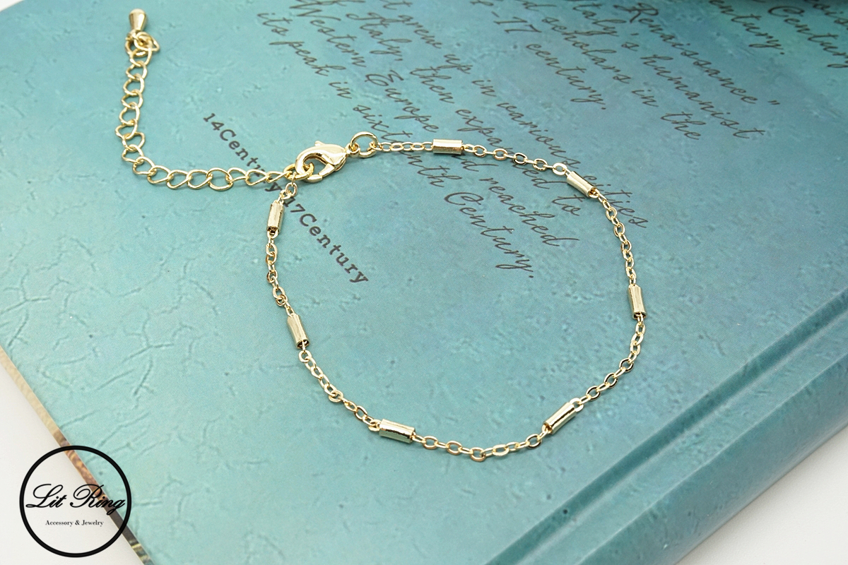 【Lit Ring】簡約14k金銅鍍小金管手鍊