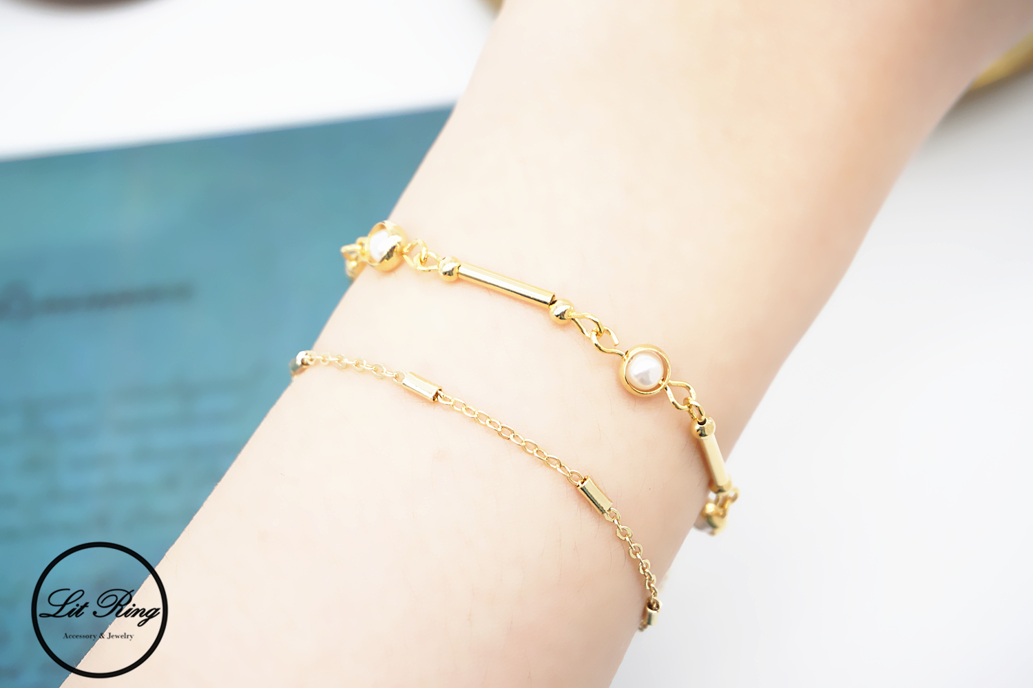 手鍊是銅厚鍍14k金材質,質感亮麗,保色時間較一般電鍍飾品長