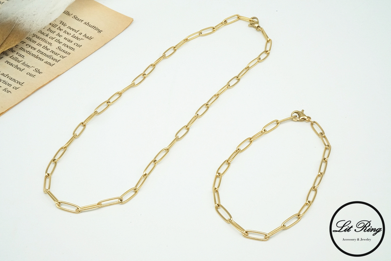 【Lit Ring】金色寬鍊條項鍊/手鍊