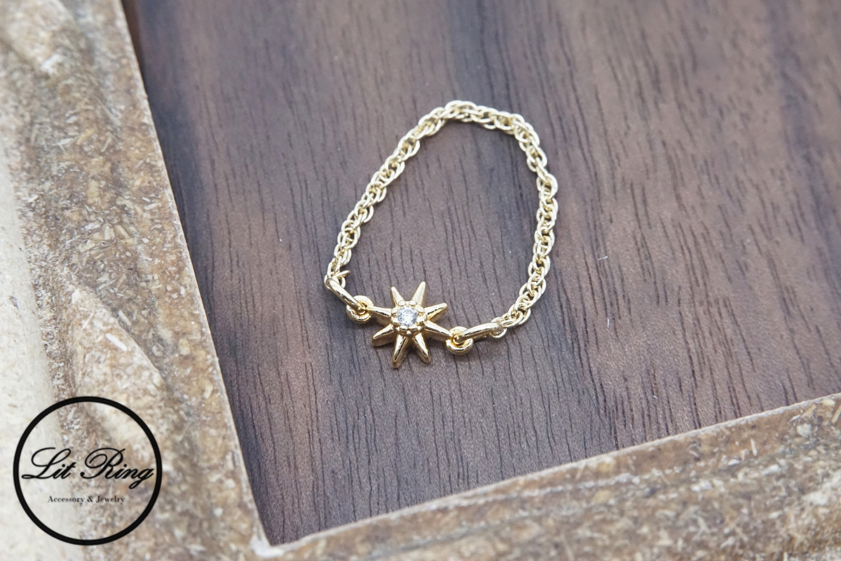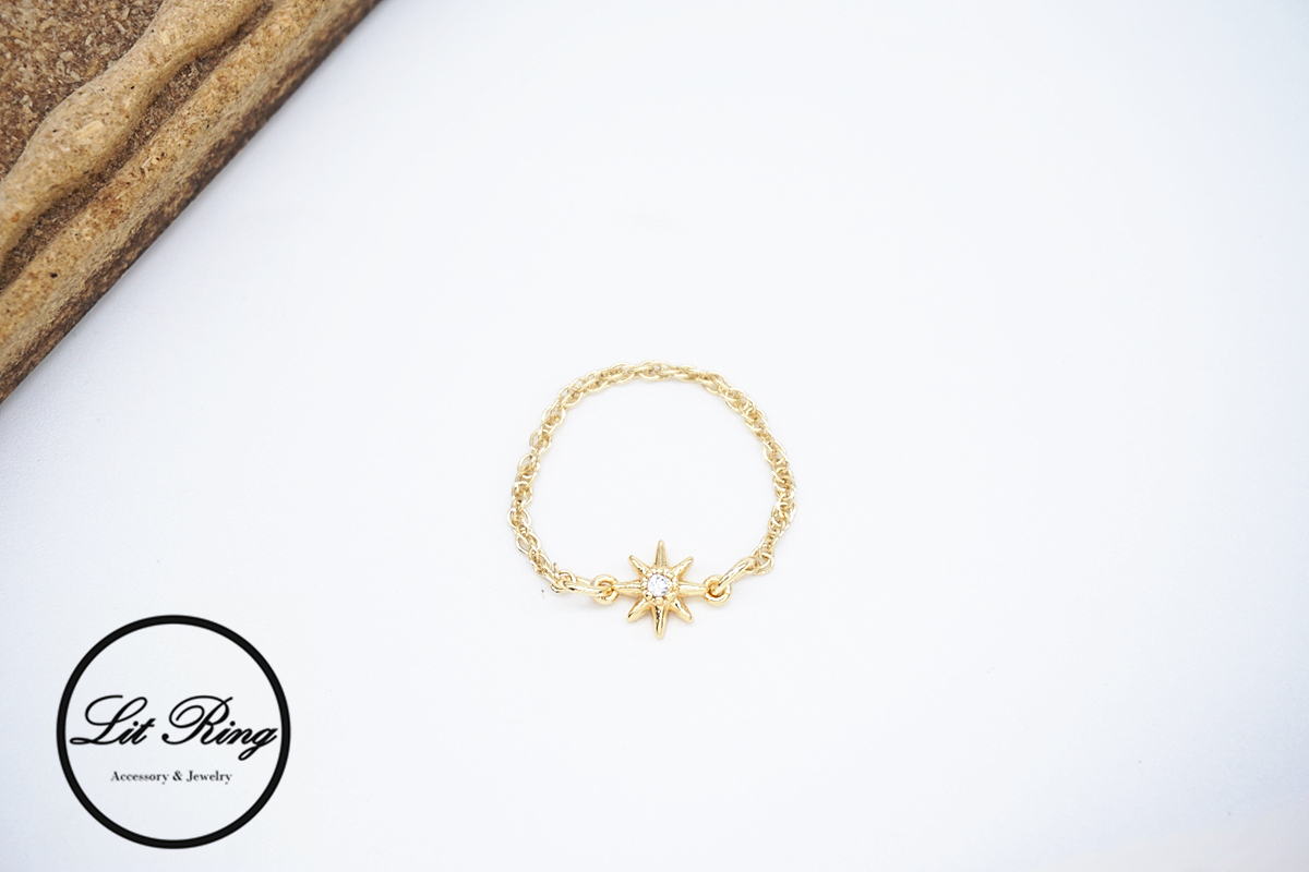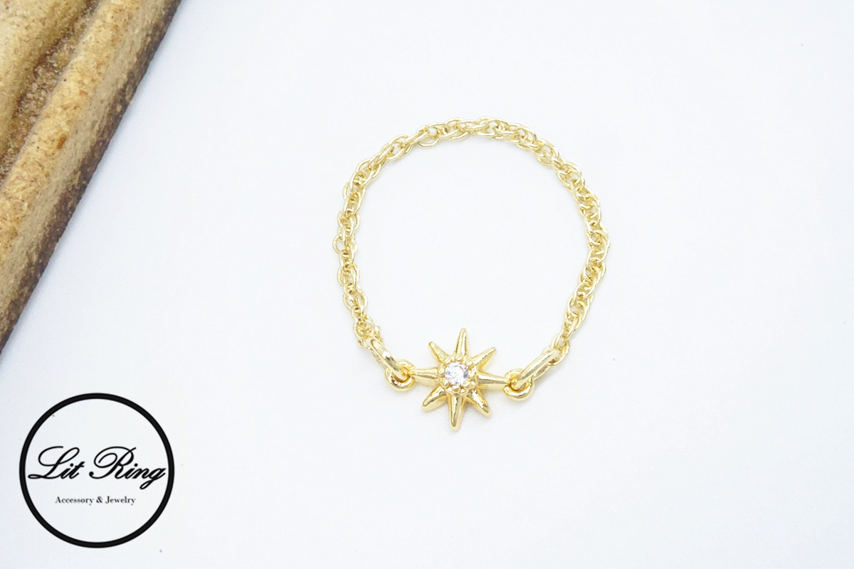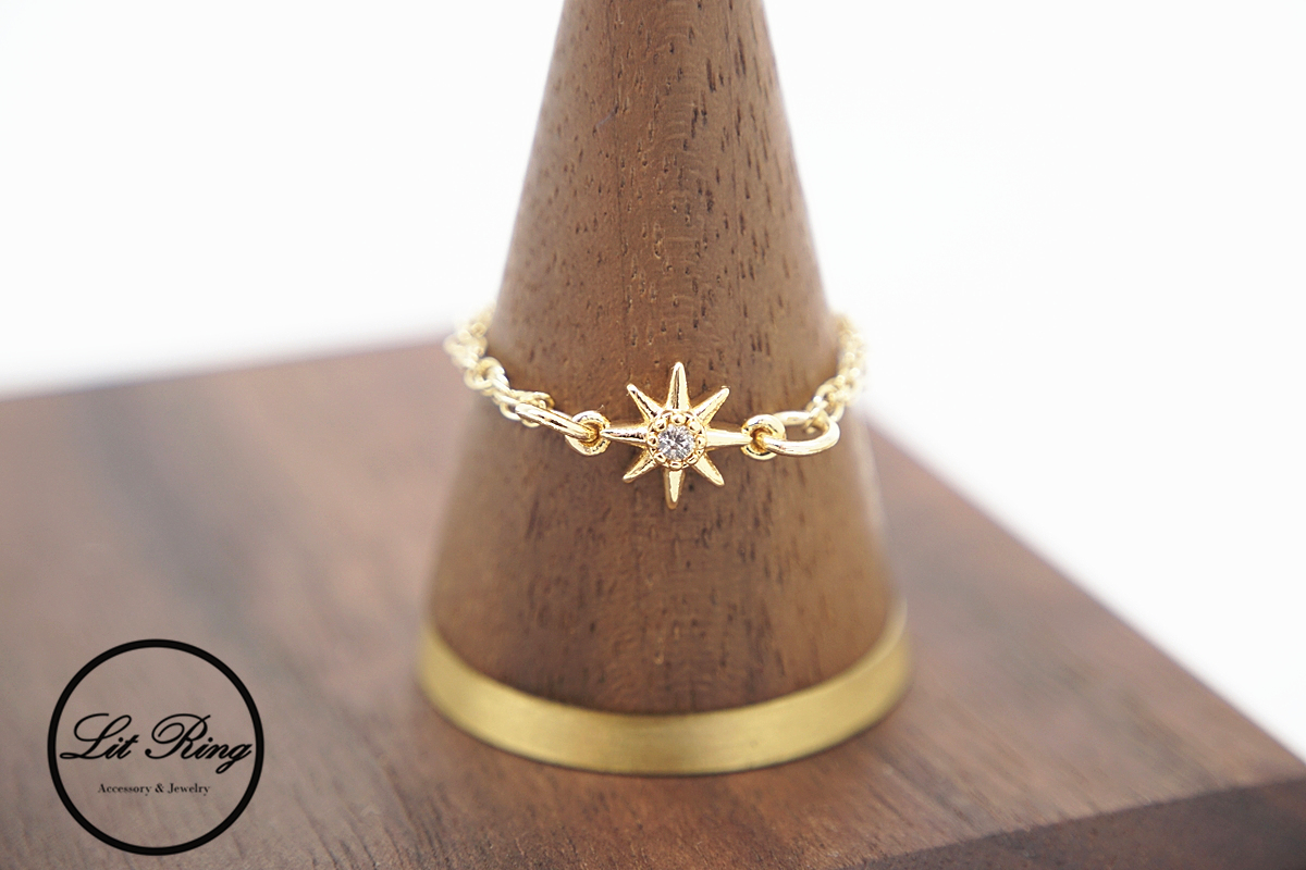 【Lit Ring】14k金銅鍍小太陽鍊條戒指