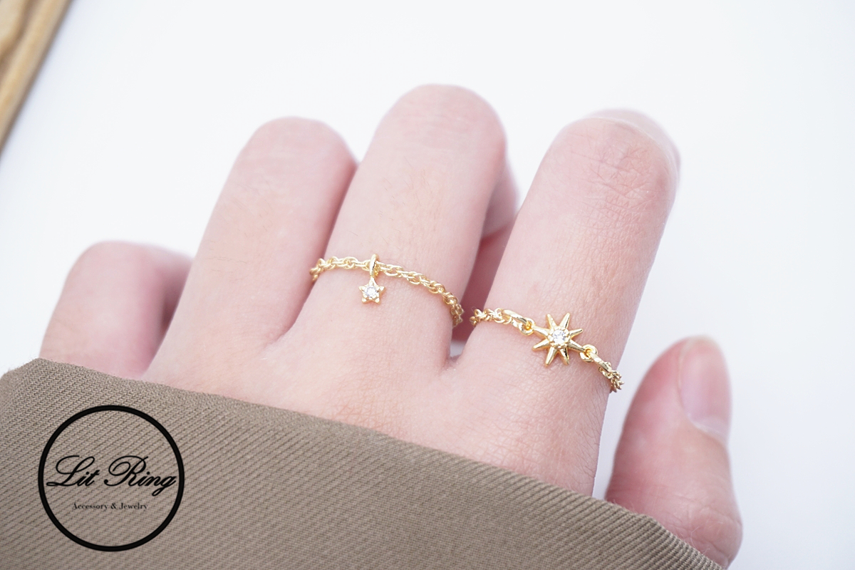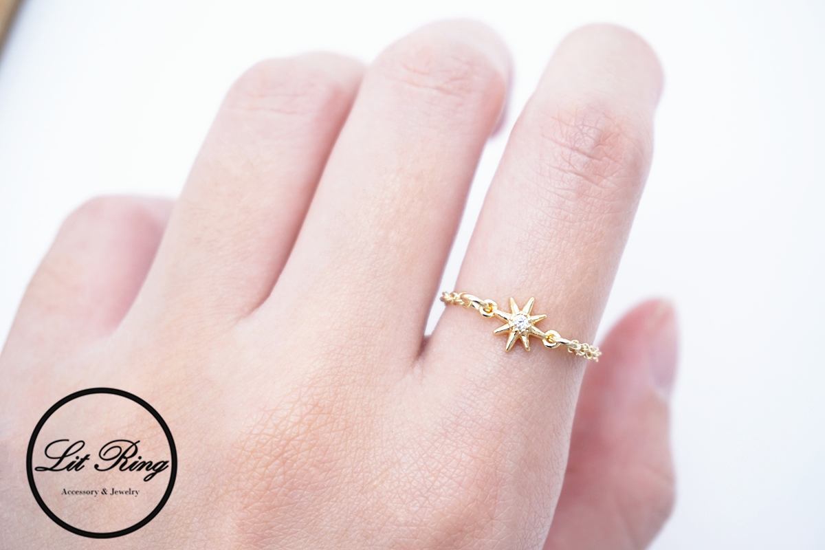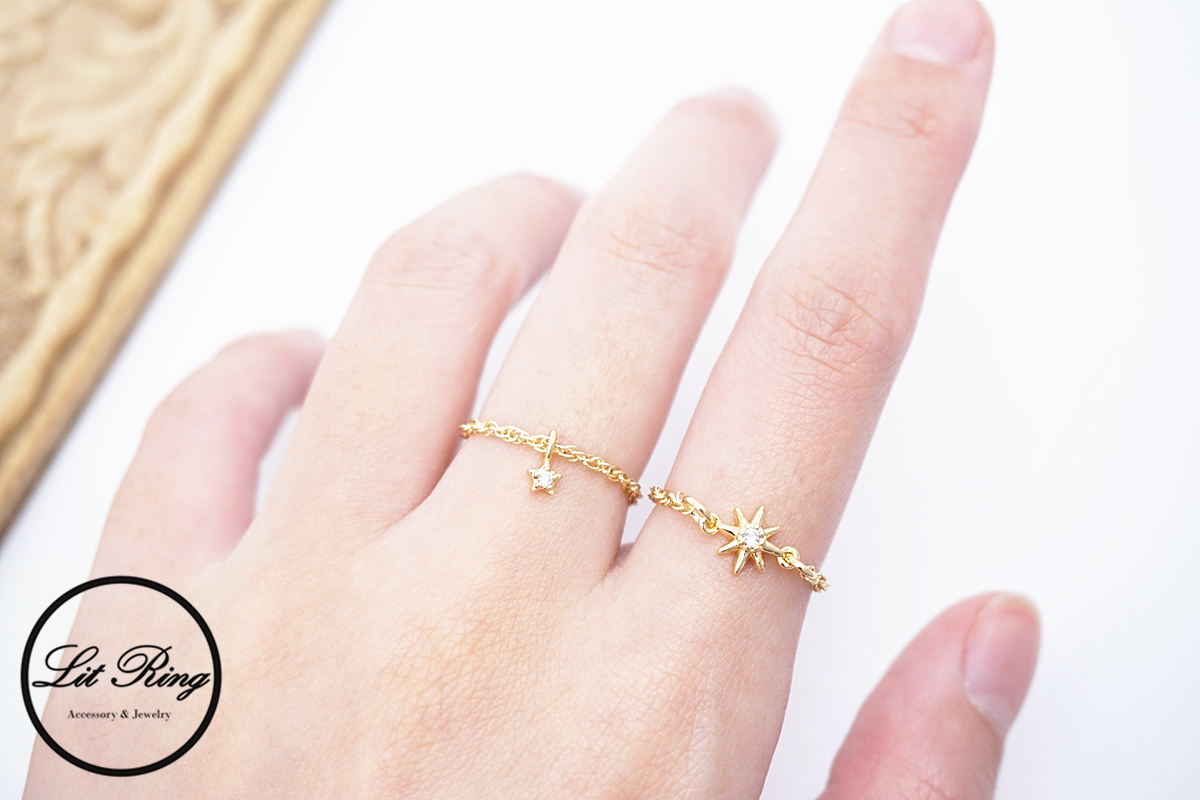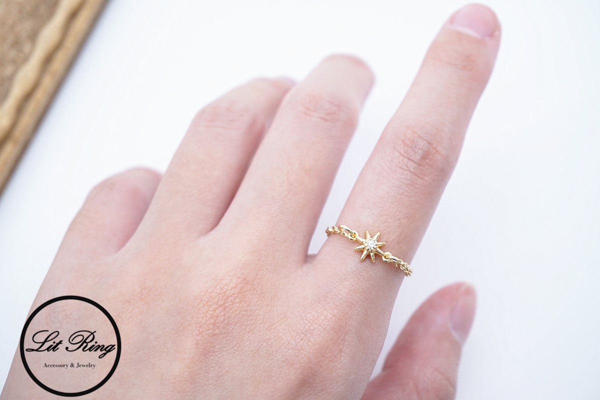 【Lit Ring】14k金銅鍍小太陽鍊條戒指